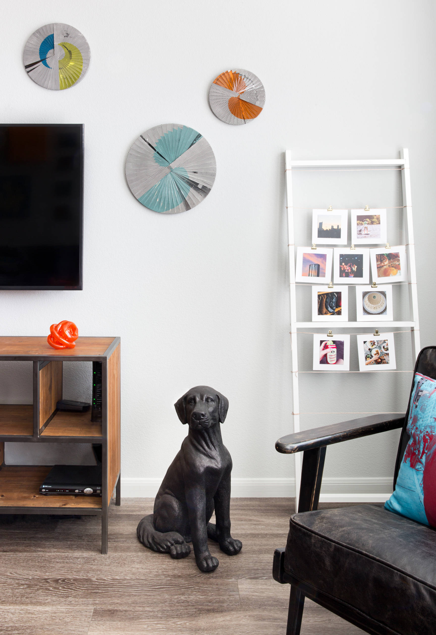 6. Step up your photos. Ladder shelves are a fun way to decorate your space, and they also make a great place to display photos.