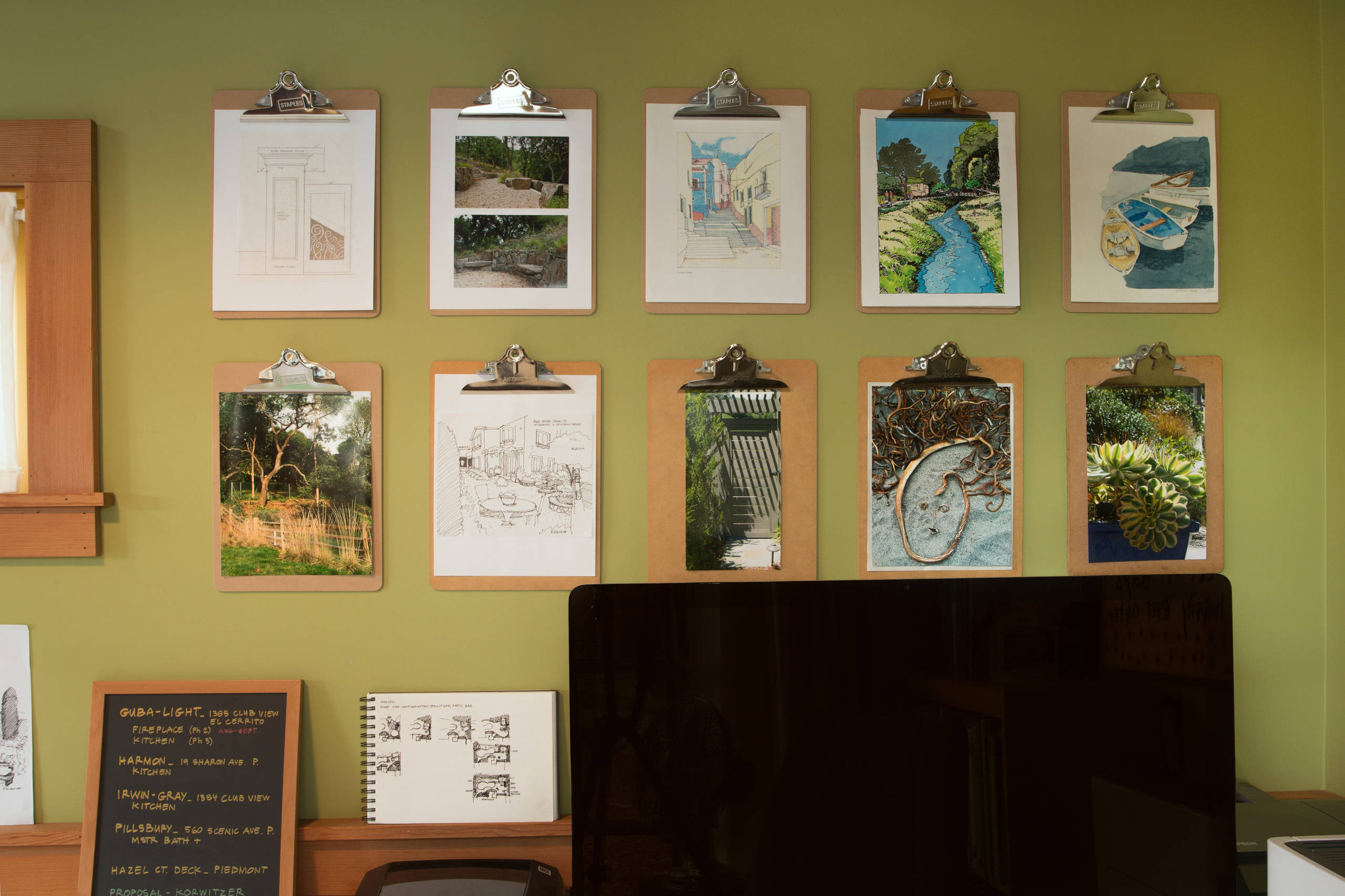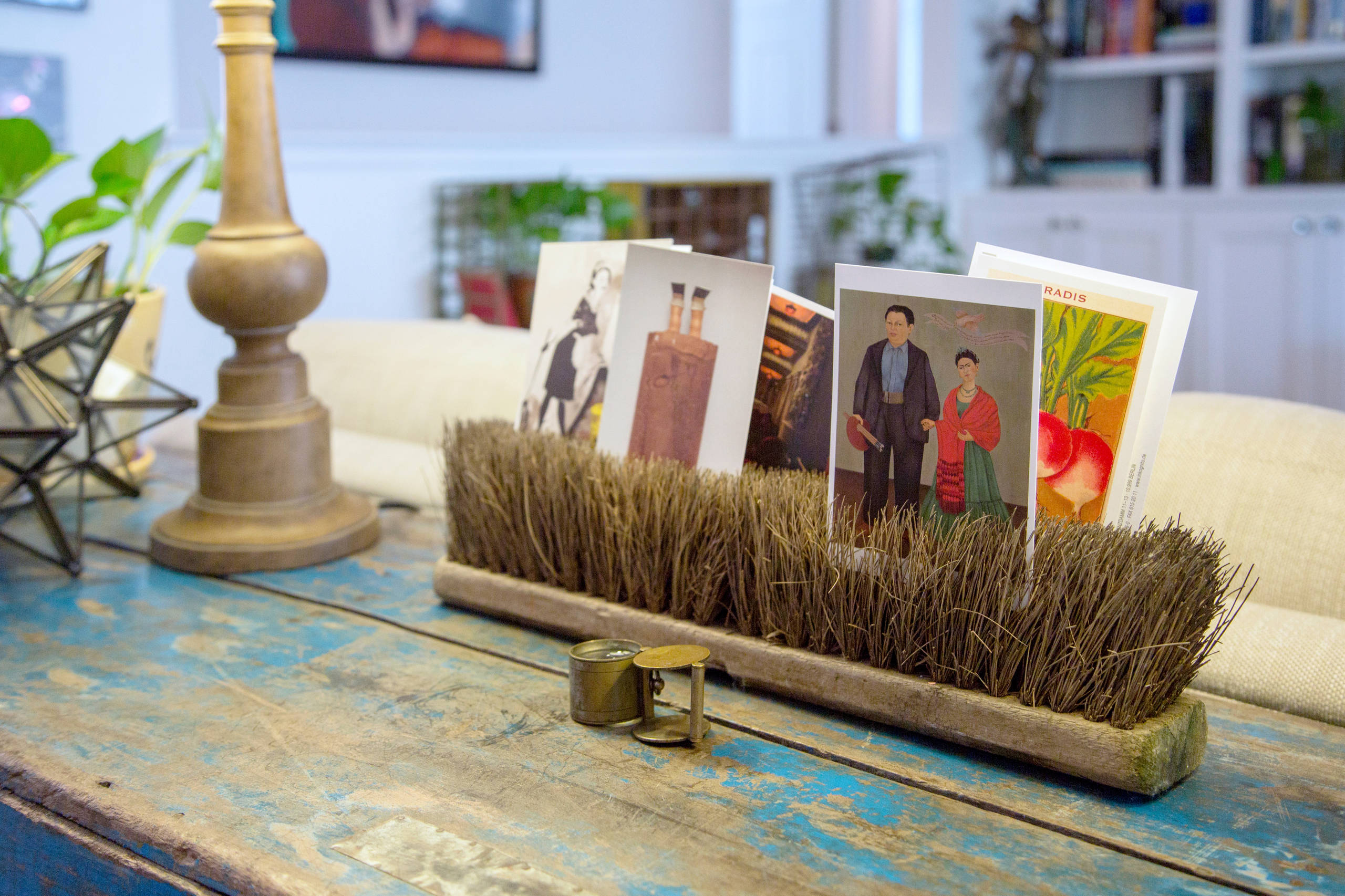 “Framing can be so expensive, and it adds up if you’re a collector,” homeowner Lize Smeaton-Fox says. “An entire row of clipboard art can be really striking.”