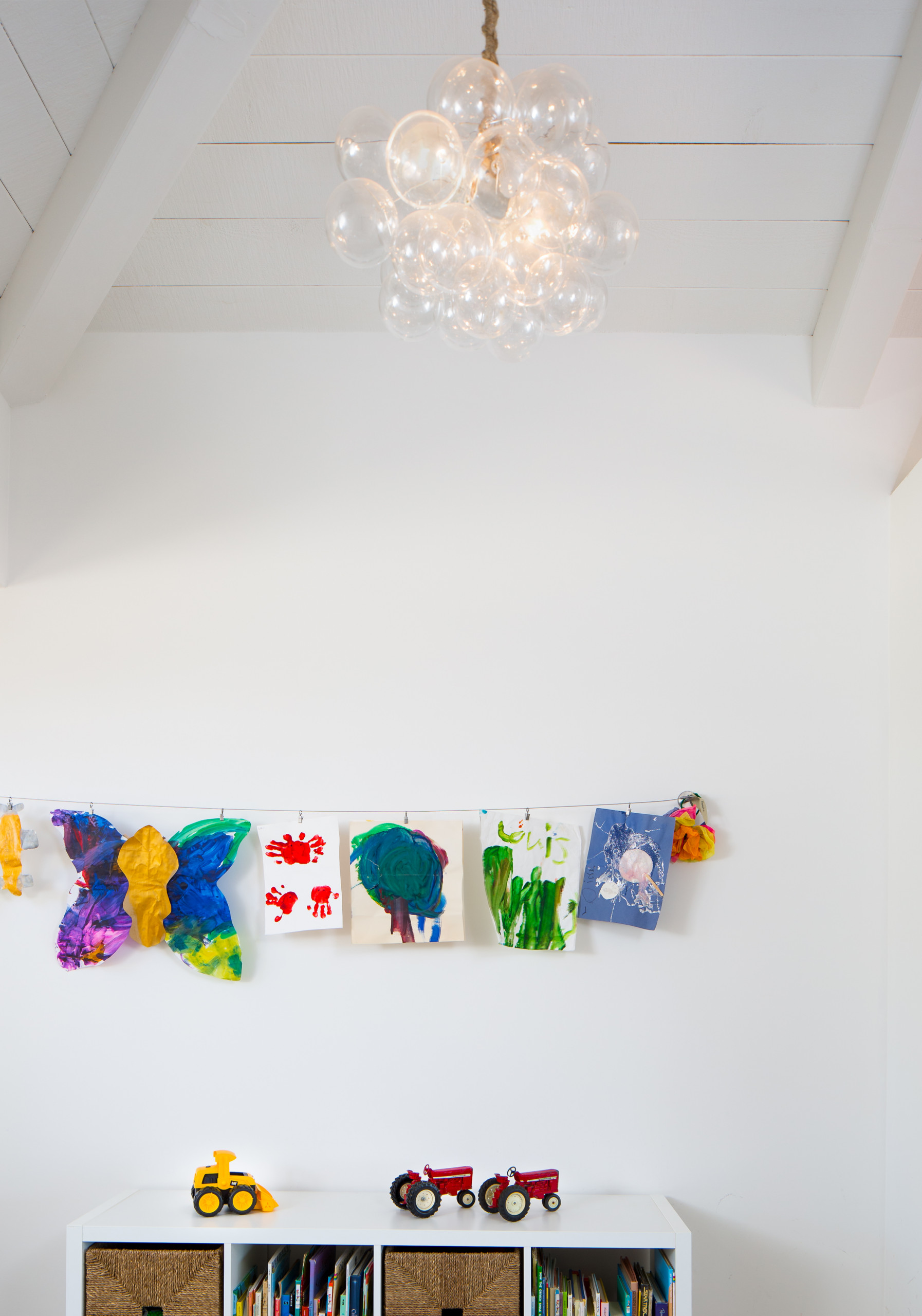 Also consider playing around with how you clip your photos to it. Decorating your office? Use binder clips. Dressing up a kid’s room? Try colorful clothespins. Hanging photos in the kitchen? Chip clips could work. The most important thing is to have fun with it!