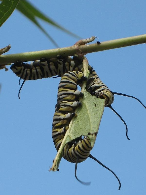 Choose plants to support wildlife. Regionally adapted natives come with another perk — they support local wildlife, from insects and their young (like the monarch caterpillars seen here on milkweed), to birds and frogs and who knows what else. Many pollinators have adapted to know only the taste and fragrance of certain plants, which increase seed yield and quality while providing for the insect’s lifecycle.