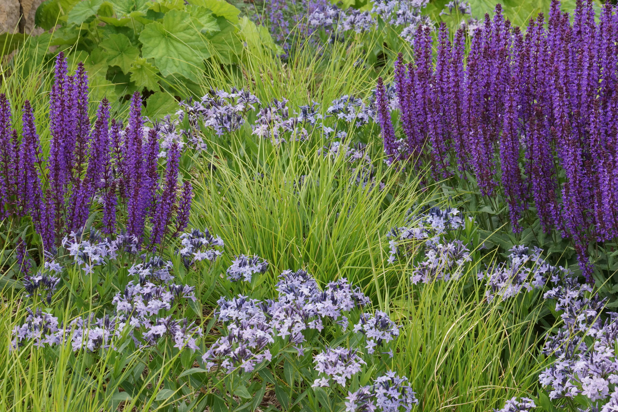 Look at local plant communities. I’d also suggest looking at local plant preserves or arboretums to see native plant communities in action. This will give you an idea of what plants work well with each other aesthetically and ecologically.