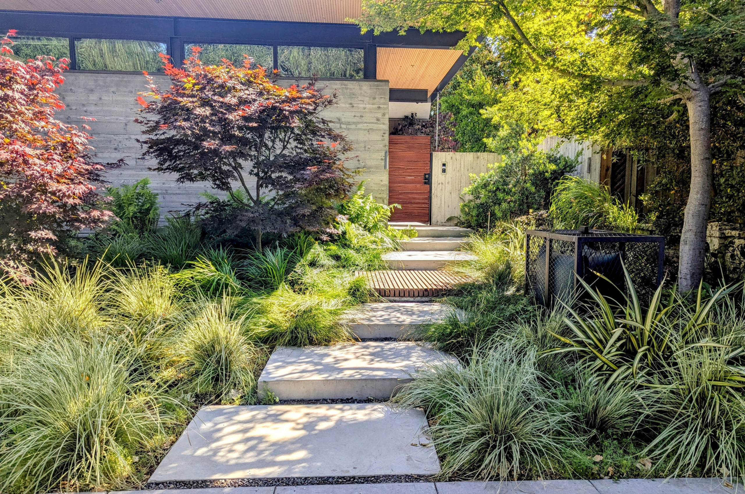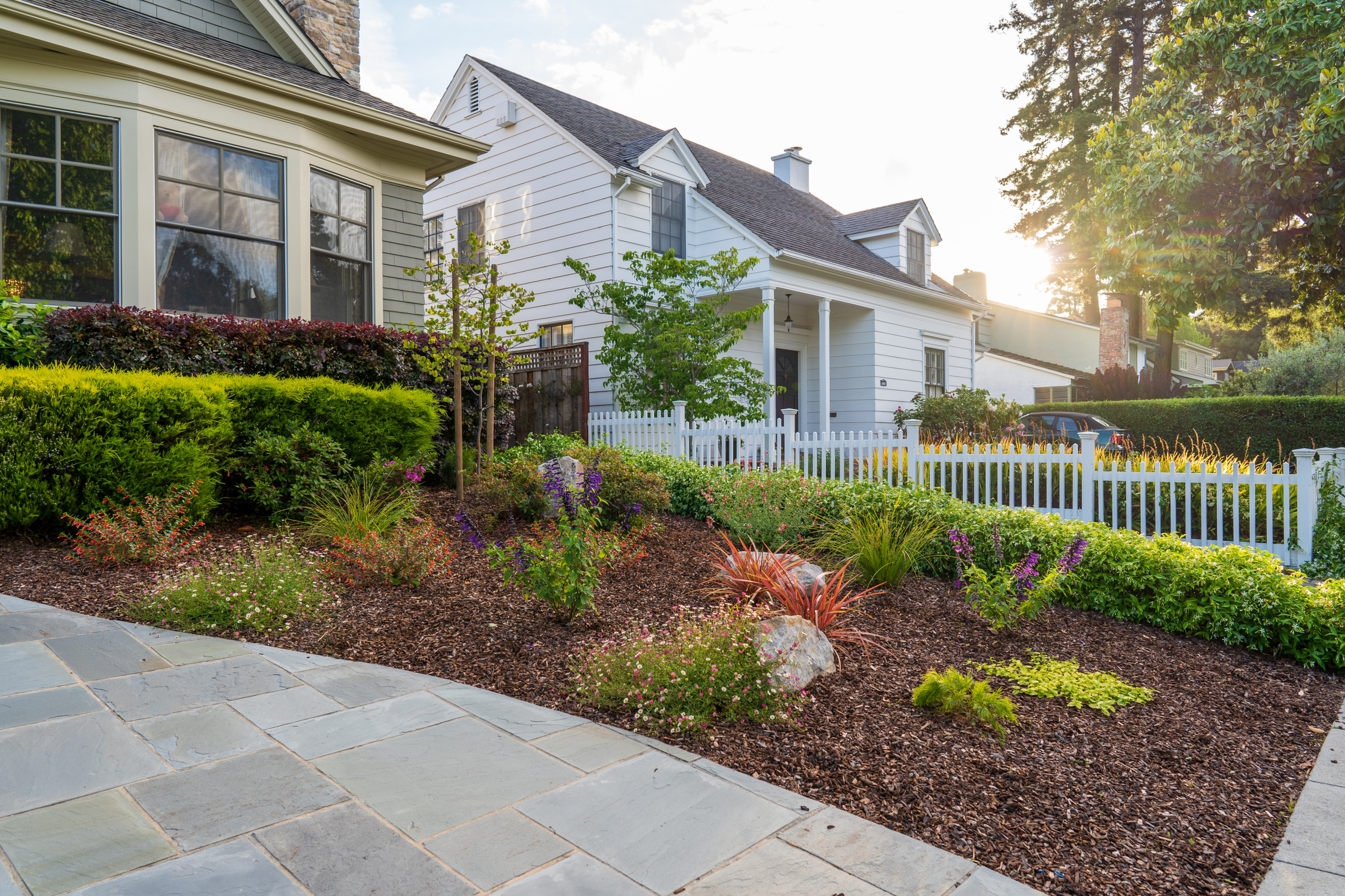 Hayman often plants trees and shrubs in front of fences that are still in good shape but aesthetically past their prime. “It creates a backdrop and a layered effect,” she says.