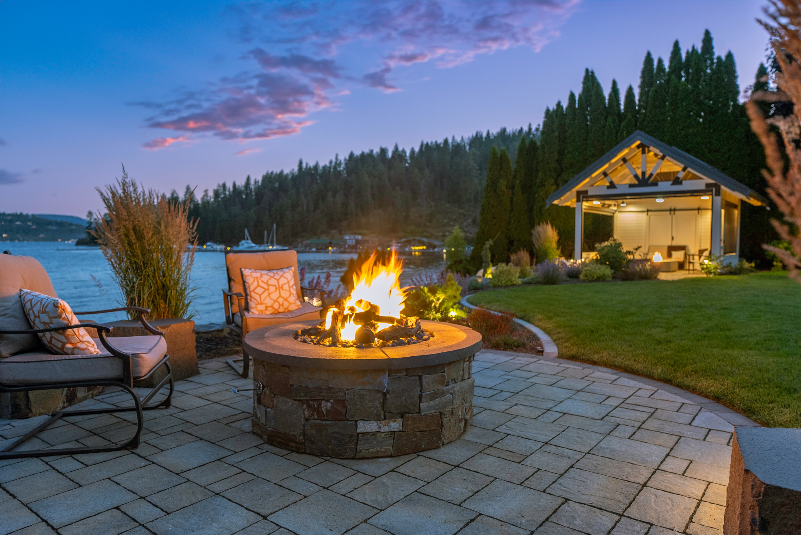 Choose budget-friendly options for now — while planning for future upgrades — as another way to save without sacrificing on a space you’ll love and use. “Use a traditional grill and plan for a built-in kitchen, or bring in a portable fire pit and add a permanent one later,” True suggests.