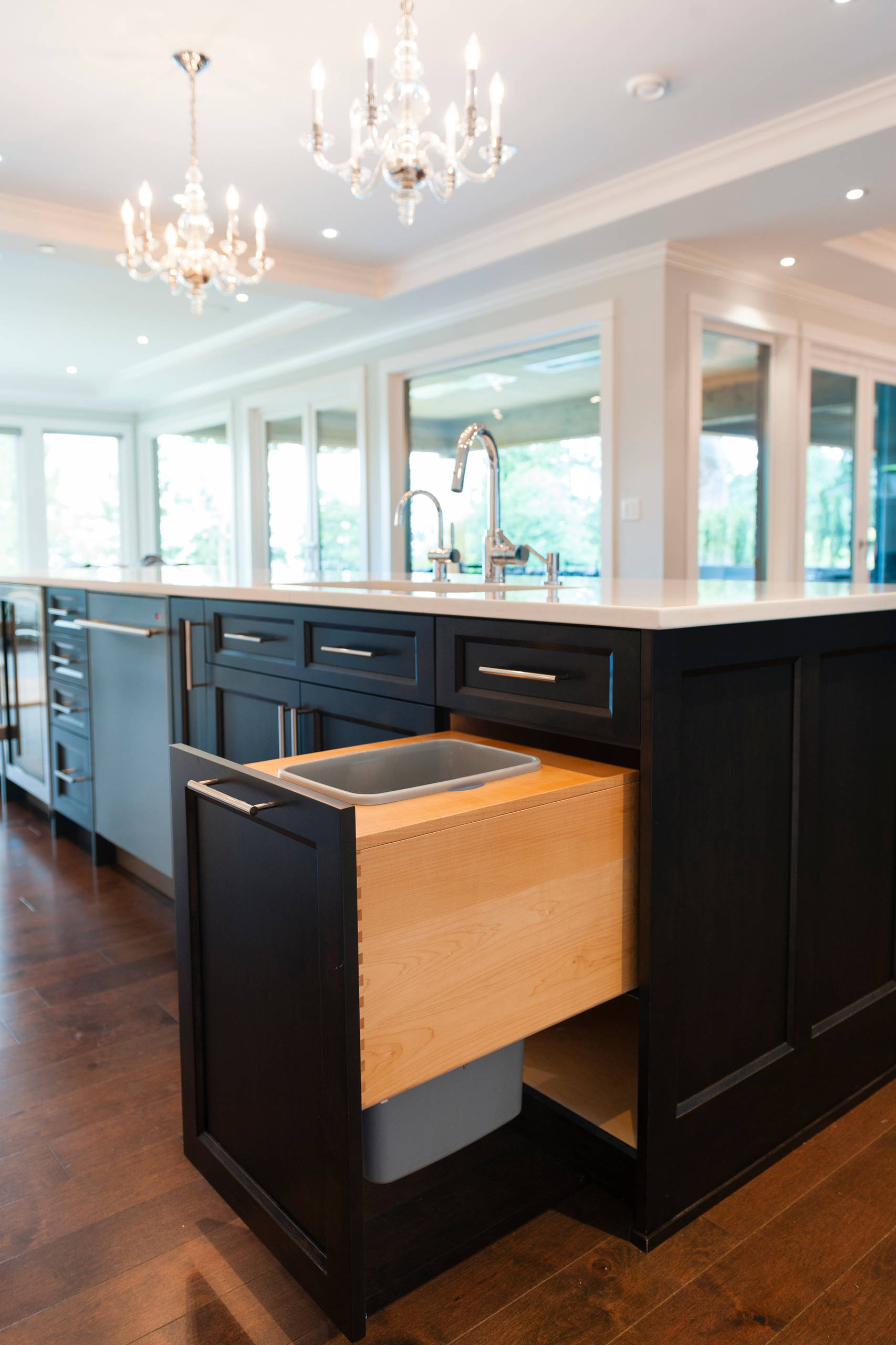Because a waste pullout is essentially just a very deep drawer, it can easily be integrated into the look of your cabinetry, bringing some great contemporary functionality to very traditional or transitional style.