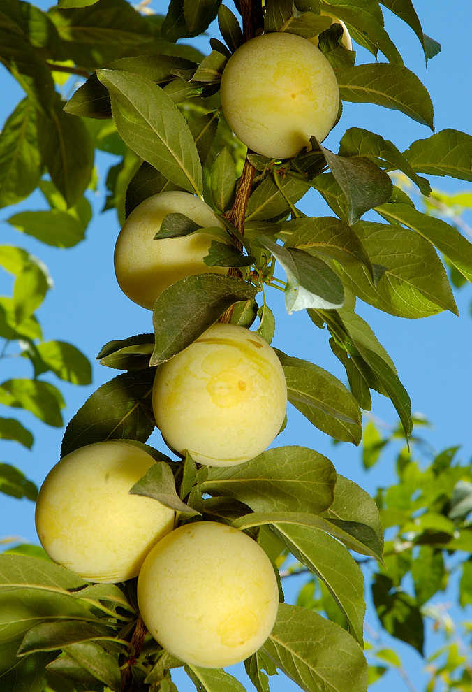 European plums are sweet and firm. They’re good for eating fresh as well as for cooking and canning. Prunes are sweet plums from Europe that are dried. European plums are self-fertile, but a second tree nearby might improve crop production.