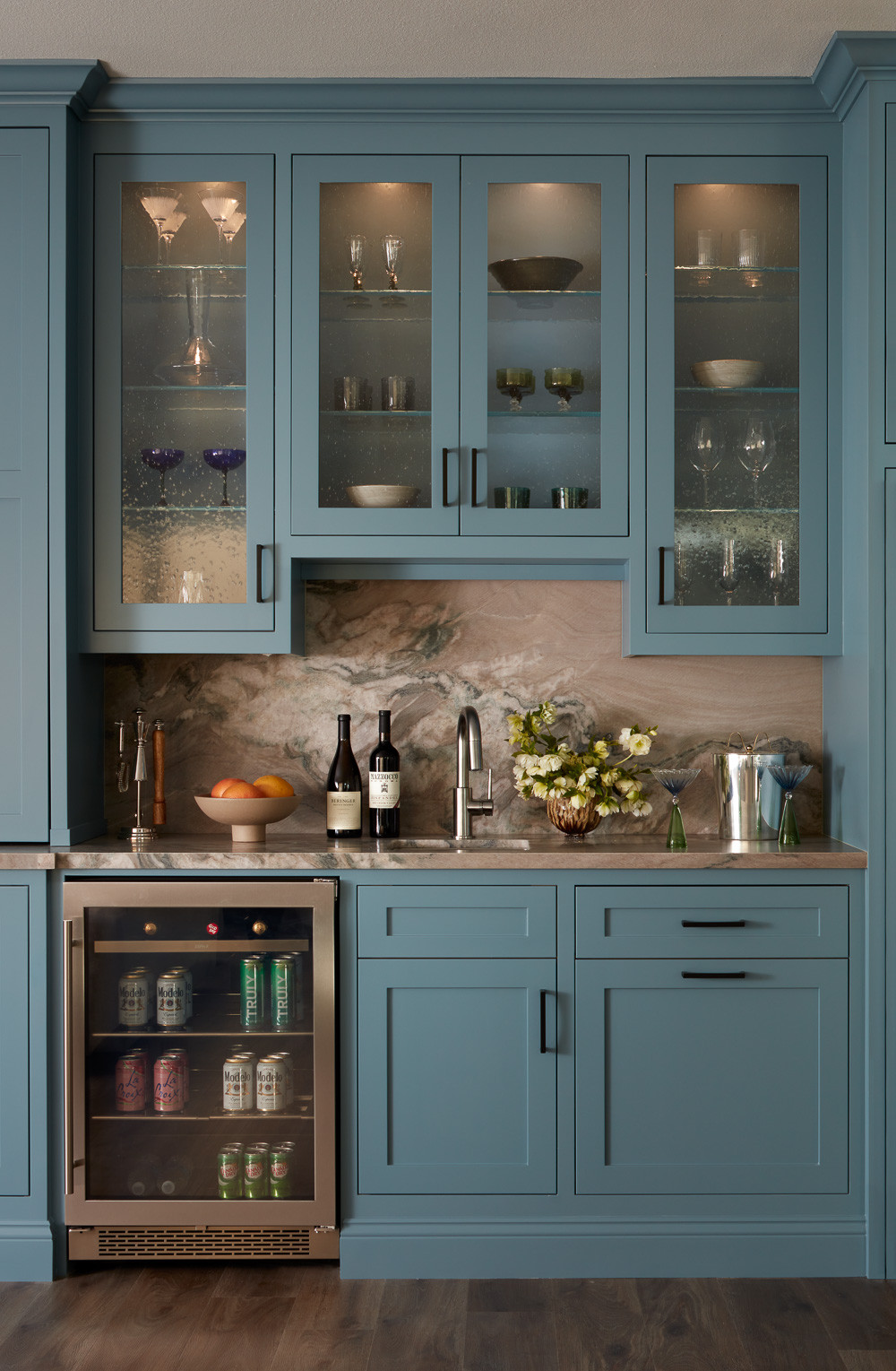 You may want to set up a separate barware cabinet close to where you serve wine, beer and cocktails, whether that’s a counter space, buffet or bar cart.