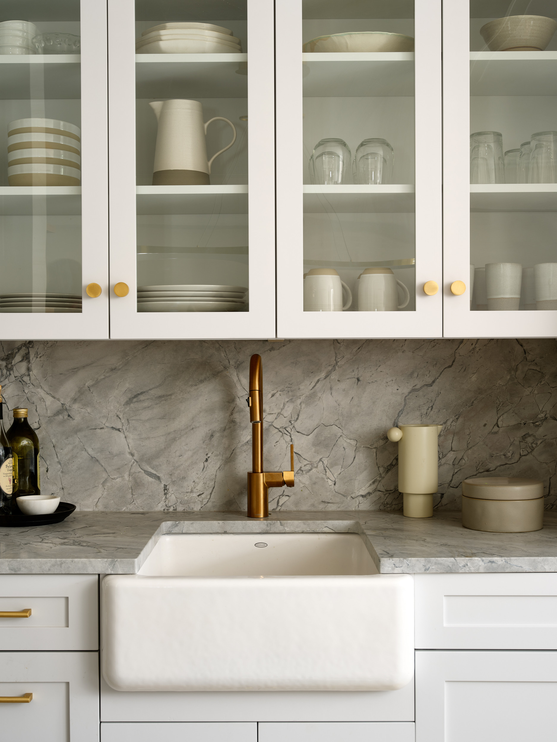 Like your good dishes, these items are worthy of display. If you don’t have a visually open spot for them, dedicate a shelf or an entire cabinet. When you come home with a bundle of blossoms from the grocery store or freshly cut flowers from the garden, it’s nice to make the kitchen sink and adjacent counter your own little floral studio.