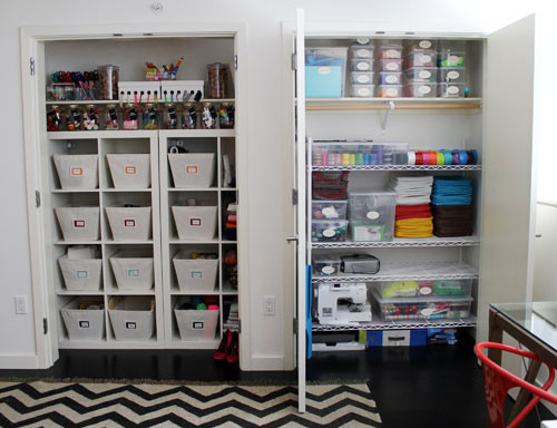 “Storing and organizing a great variety of small items is usually the challenge,” says Messis, co-owner of transForm, a closet and storage design company. “Art and craft supplies as well as small tools add up fast and take up a lot of space.”
