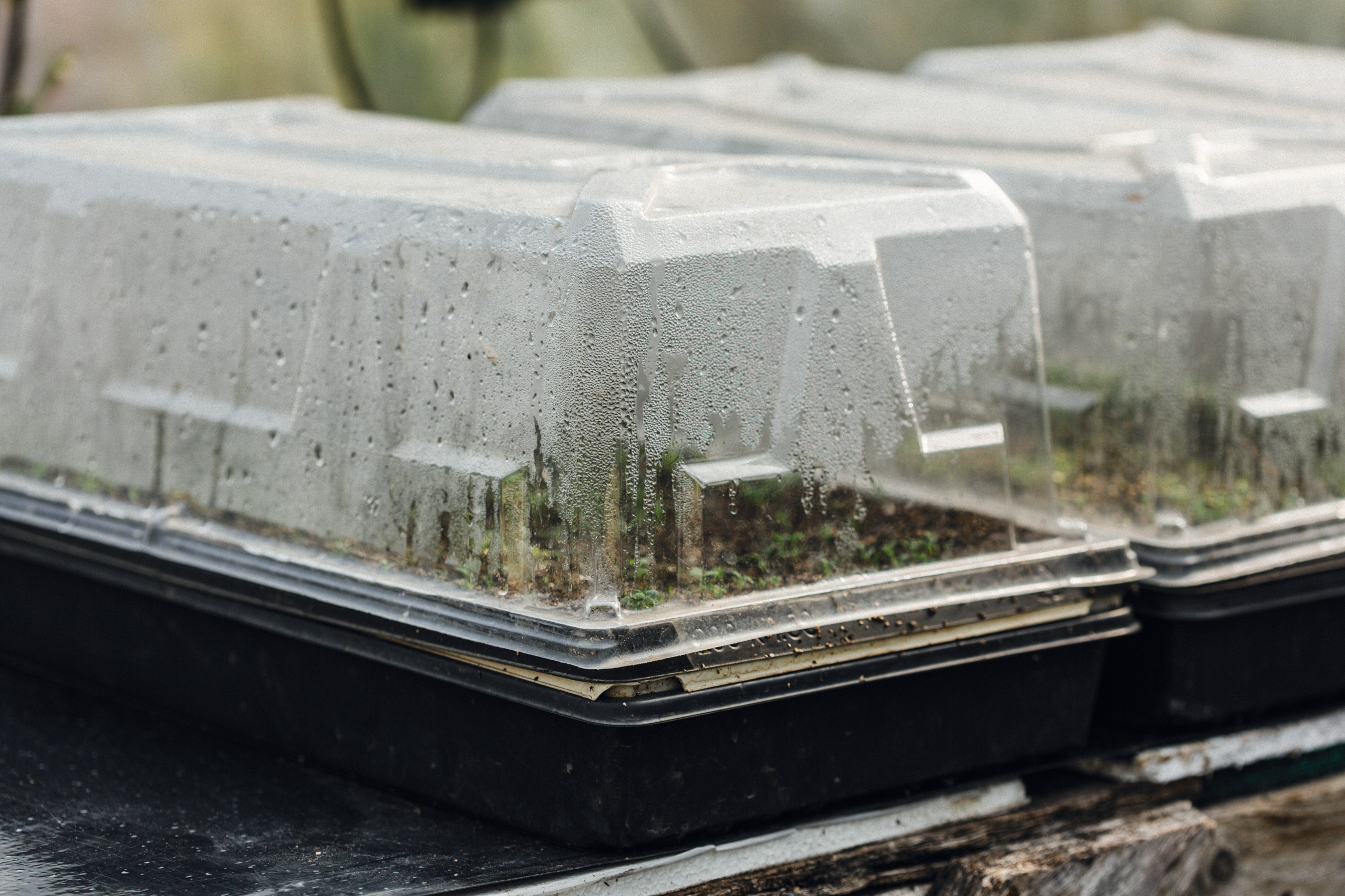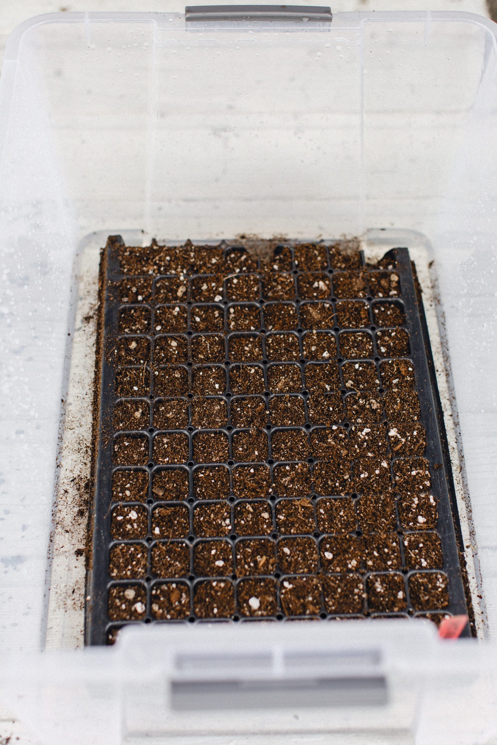 8. Cover the trays or pots with a clear plastic dome and set on a 70°F (21°C) heat mat or in a warm corner of the house. Seeds will usually sprout before you need to water again, but check the soil for moistness after two to three days and bottom water again if it’s dry.