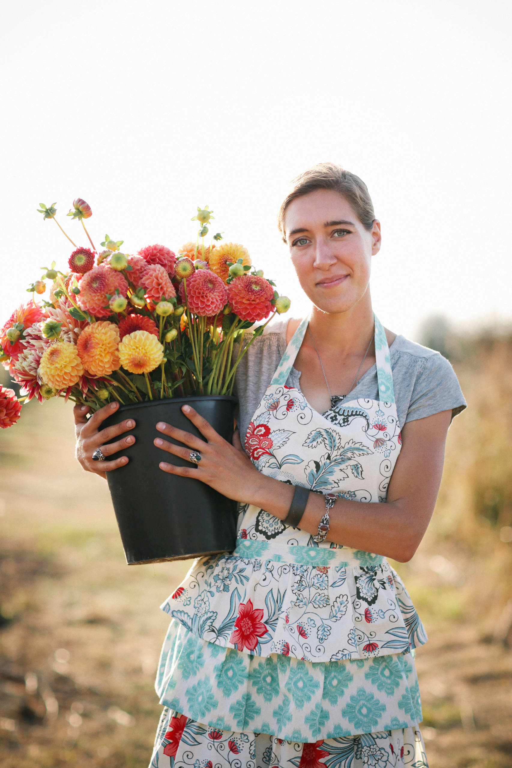 Benzakein shoulders an armload of dahlias for the cover of her book. More info