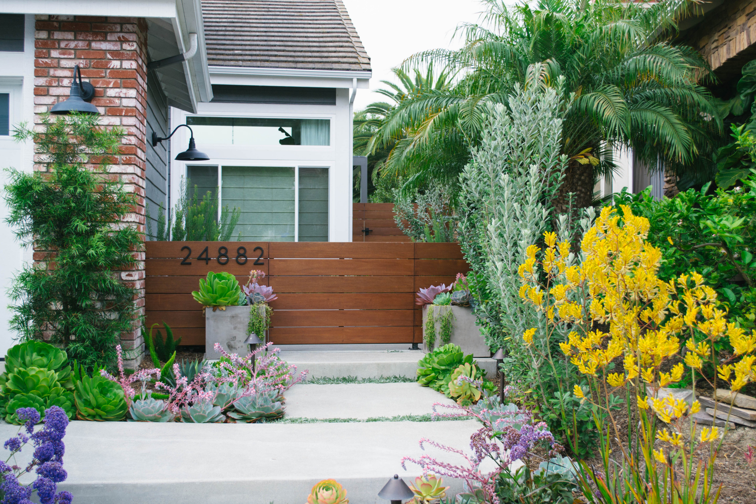 The entryway and path to your front door are where a potential buyer will get a first impression, and it should be a pleasant one. So mow your lawn, trim overgrown hedges, rake leaves, power-wash sidewalks and siding and plant vibrant and healthy flowers and plants. You may also want to replace old welcome mats. If your space is small, an arrangement of succulents or plants in a large pot, as shown in this photo, can add cheery color and textural interest to your entry.