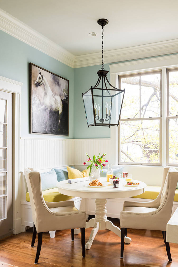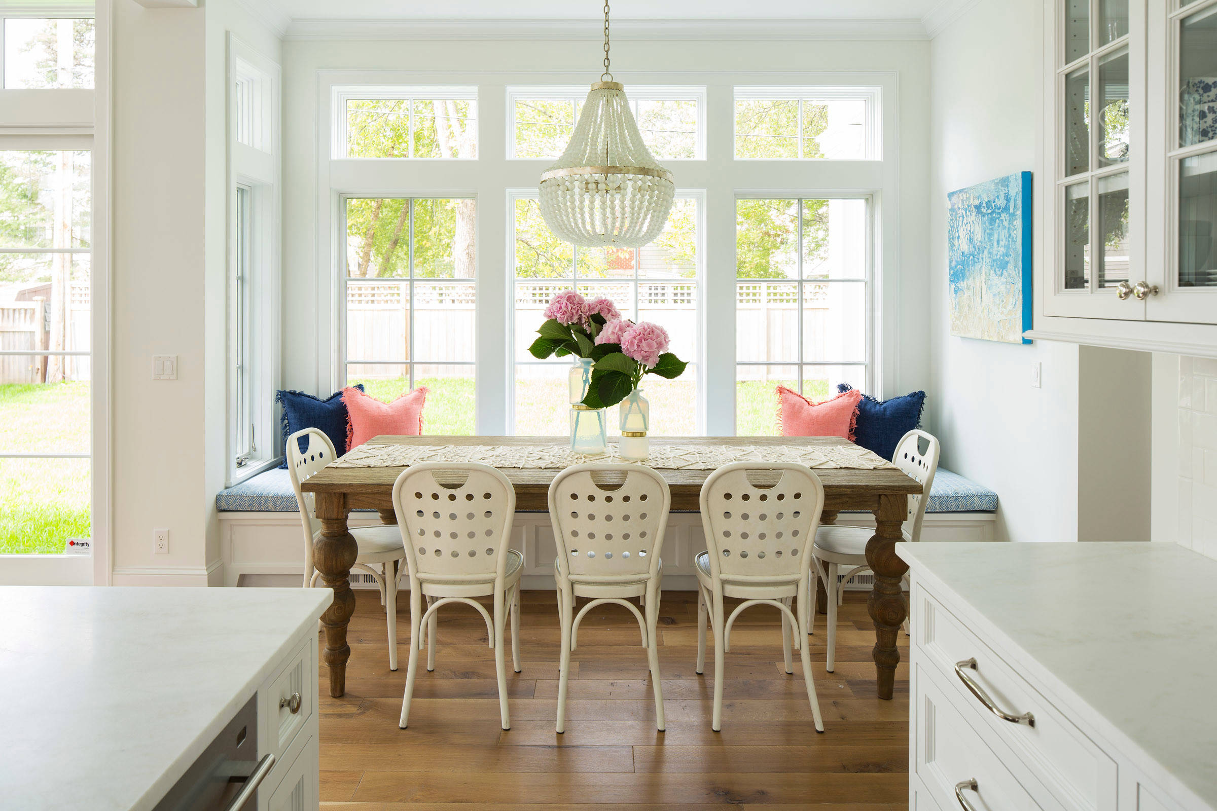 Adding contrasting chairs to your table will introduce a lot of interest, and they can easily be reused later as side chairs in another room. On the other hand, if you have some extra side chairs from a past living room, bring them to the table as comfortable dining chairs.
