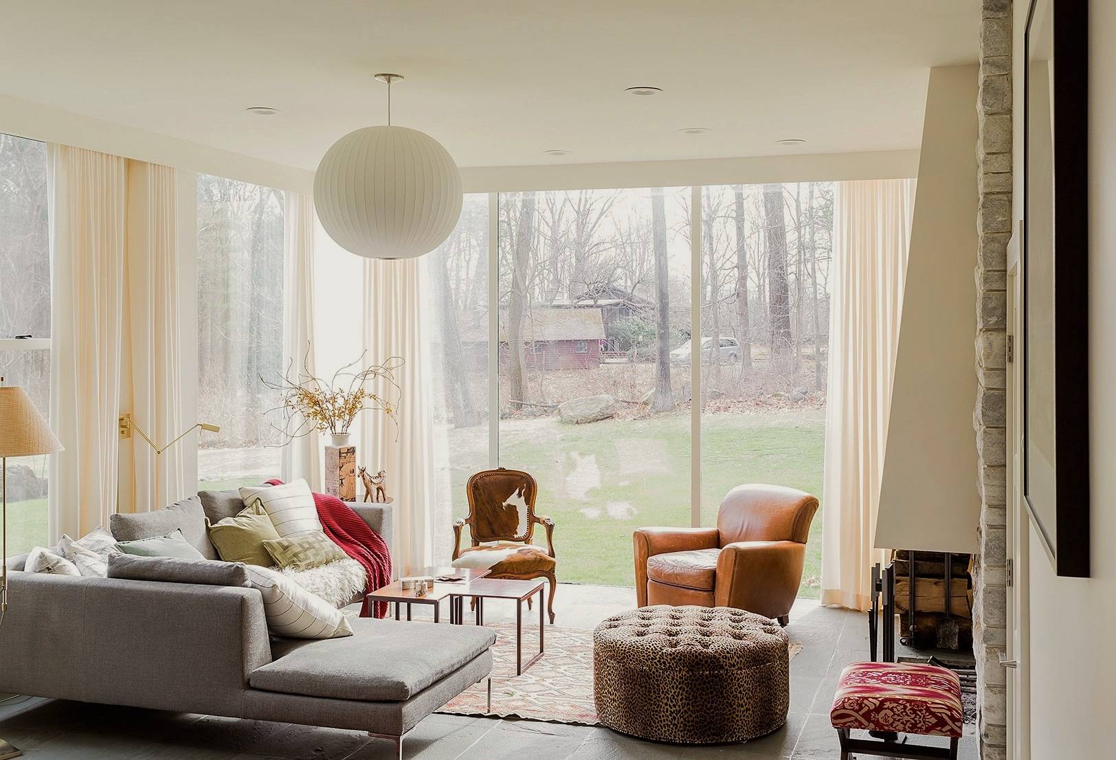 Alternatively, you can merge the panels from multiple windows to cover one window instead, so the fabric all matches. You can use, say, multiple panels from a past living room to cover a larger window in a new dining room.