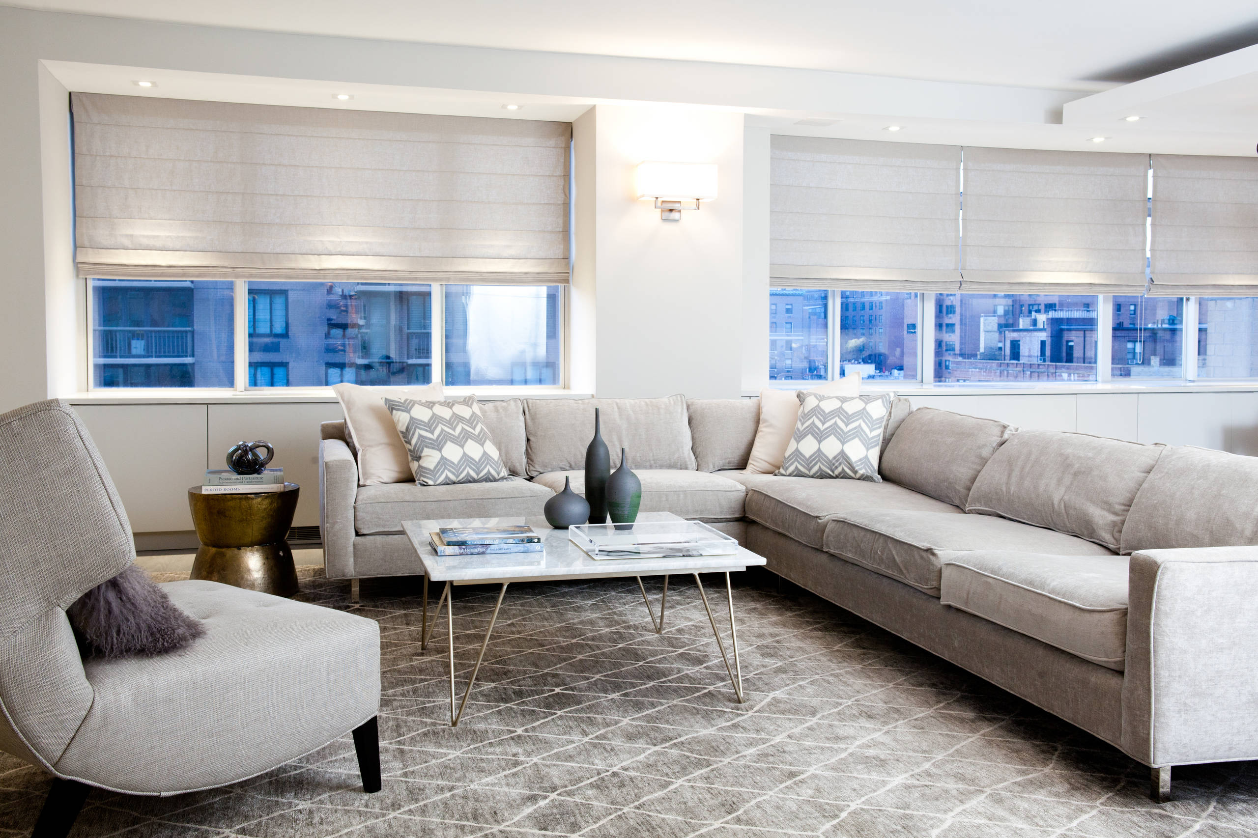 Extend a sofa into a sectional. Have a great sofa that feels a little small in your new space? Rather than replacing it, consider extending it by adding an ottoman to create a sectional.