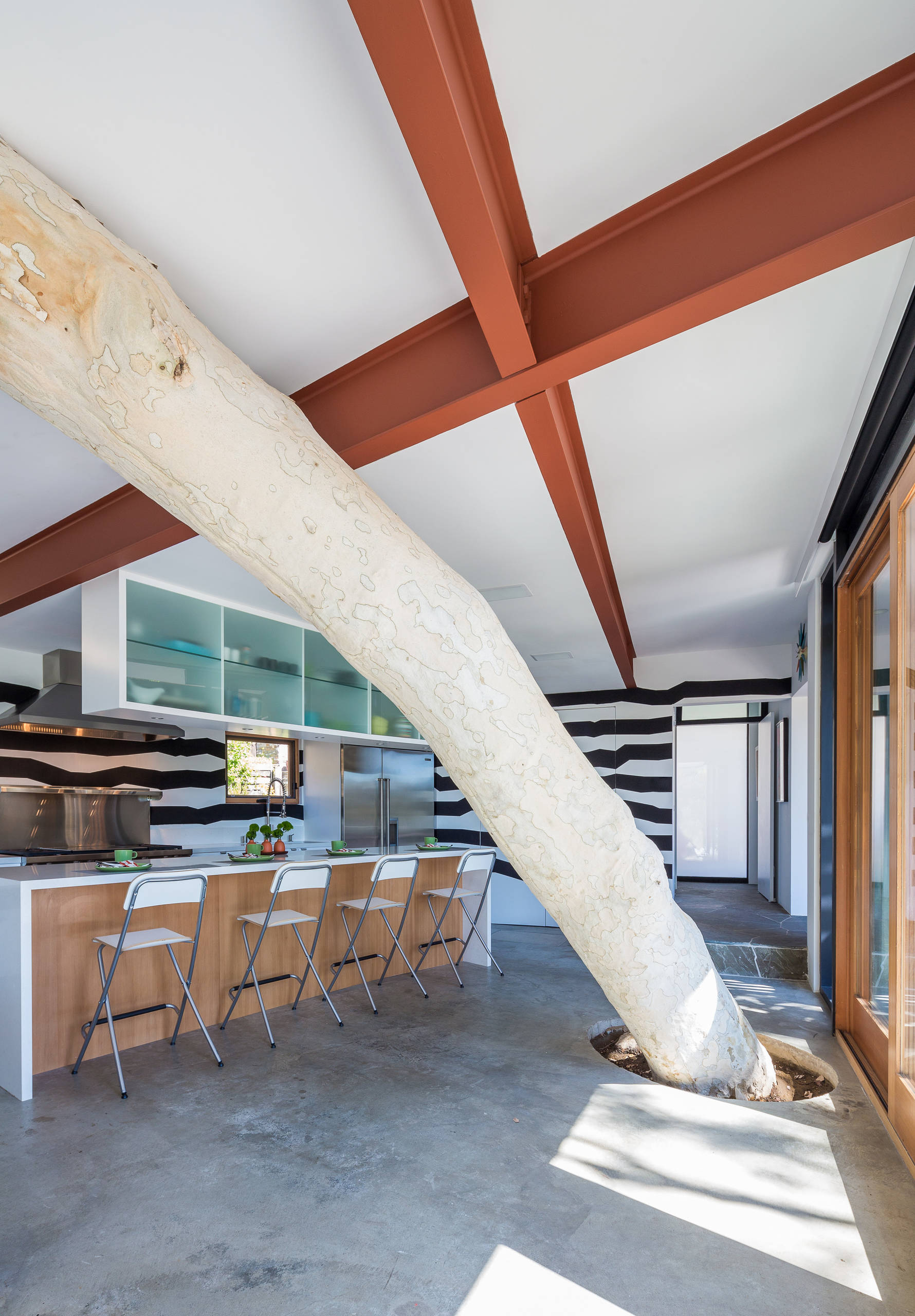 Trees are nature’s perfect architecture. Besides being beautiful, they provide shade and shelter, and change with the seasons. Hanging out in treehouses in childhood was perhaps our way of getting close to these perfect living structures. Lucky for us, we can keep trees close to home even as grown-ups. It’s possible to bring trees indoors as integrated design elements, either by using existing mature trees or with new plantings. Here’s what to consider whichever way you choose.