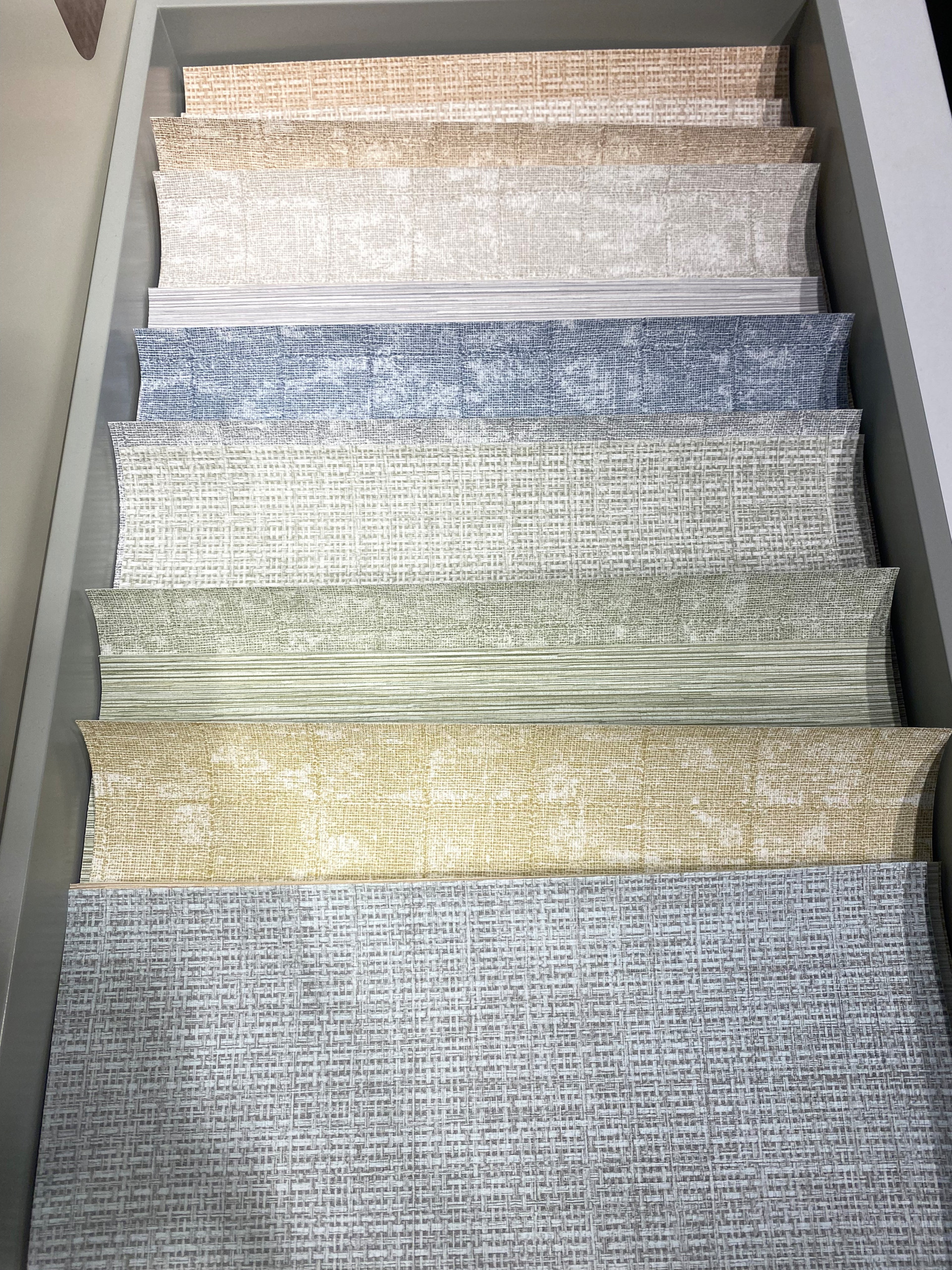 The material comes in two embossed designs that have a natural, chalky look. Concreed is more rough and rugged and Lynn has a linen-like appearance inspired by traditional plant-based weaving materials.
