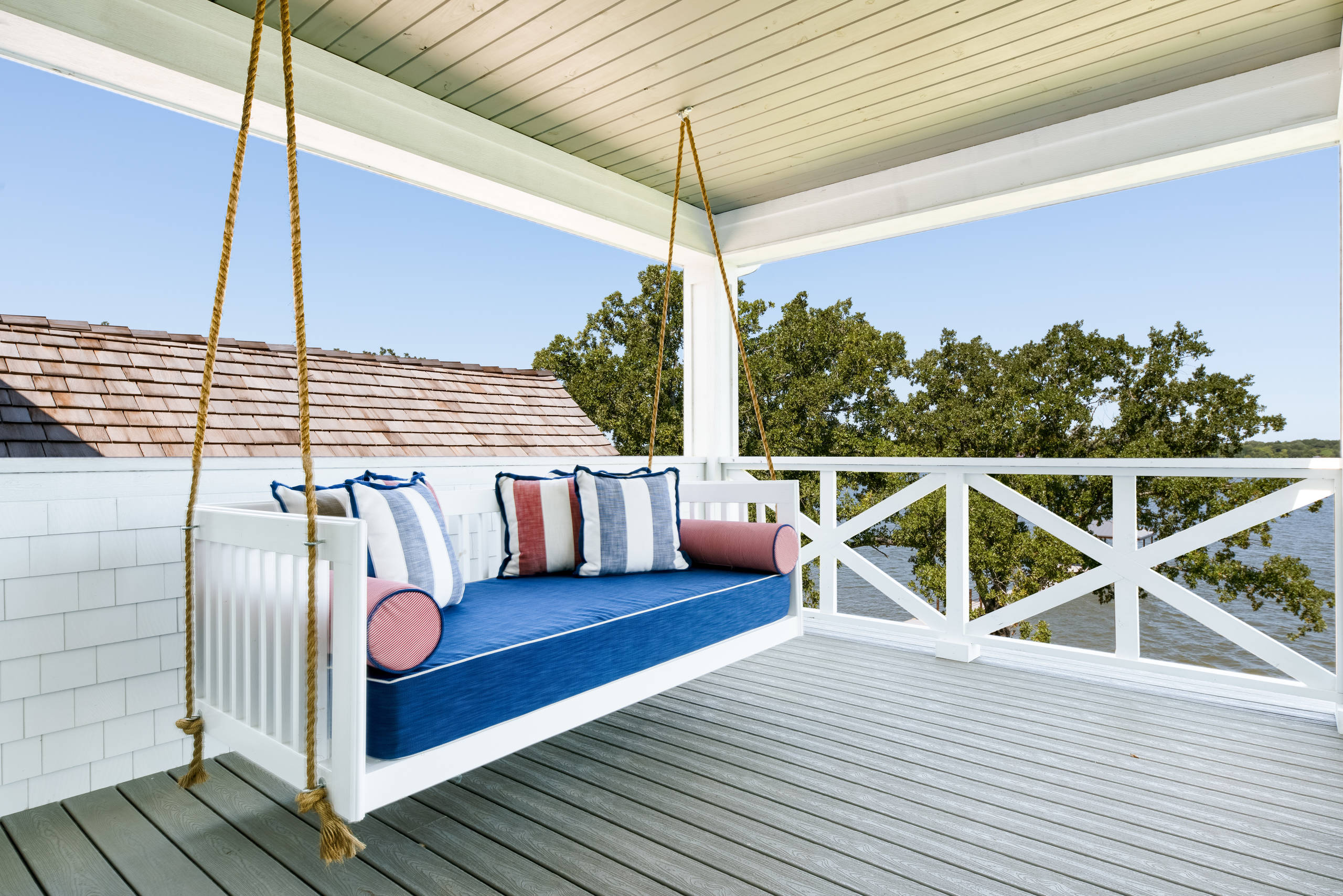 Although their movement is generally less than that of a swing, gliders still need to sit at least 30 inches away from the wall behind them, with a foot or two in front for easy access. It’s also a good idea to plan for about 14 to 16 inches on each side of the glider as well, so it isn’t crowded in its space.