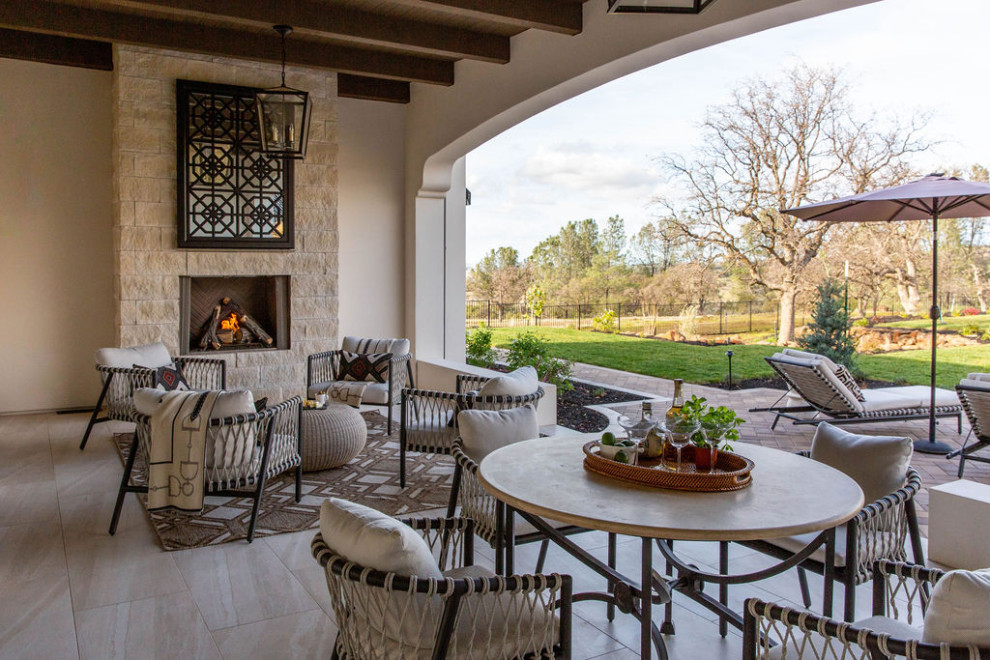 Add the comforts of home. You’ll want to think about how you want to use the different areas of your yard. “Approach the furniture layout as you would for your living room or family room,” says interior designer Kerrie Kelly of Kerrie Kelly Design Lab in Sacramento, California. She recommends incorporating side tables and coffee tables, chairs and ottomans, as well as rugs, accessories and art to complete your outdoor living space.
