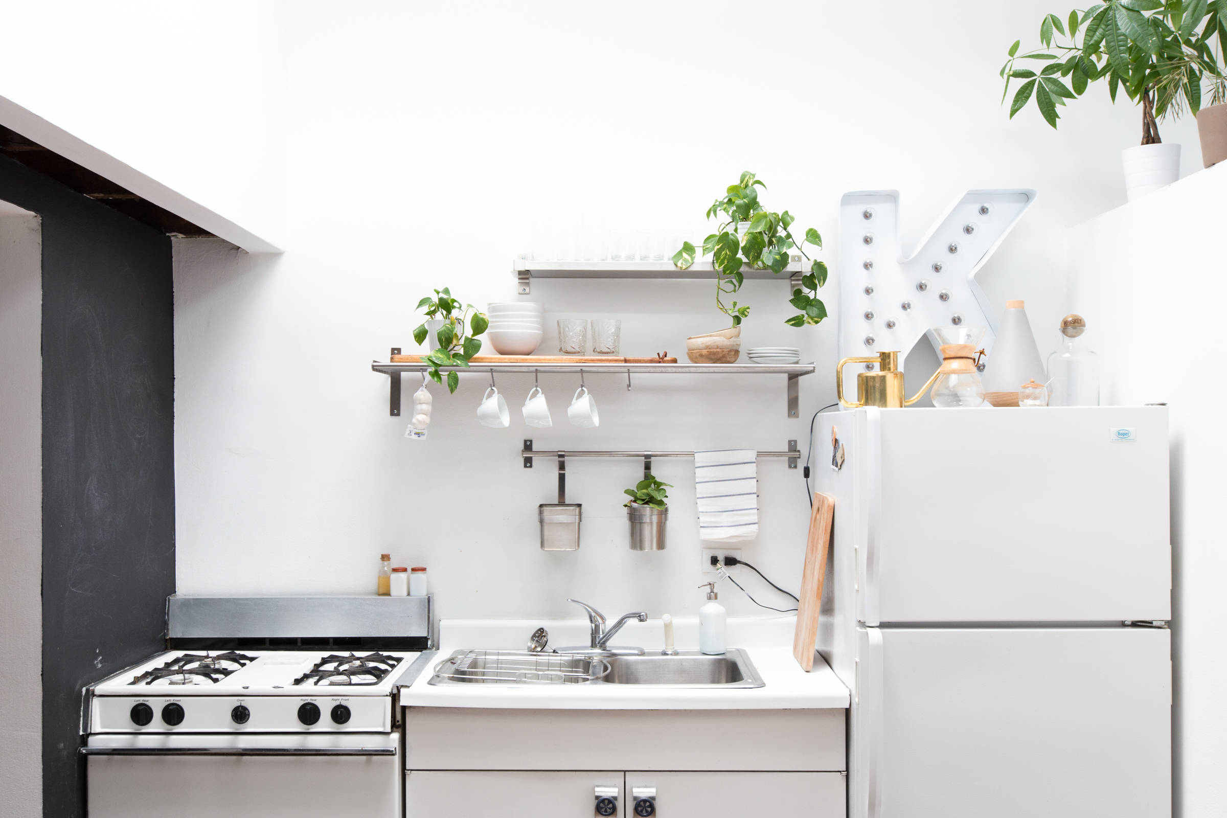 Under-the-sink rack. Locating a metal rack under the sink makes great use of this tricky space and keeps your dish towels handy.
