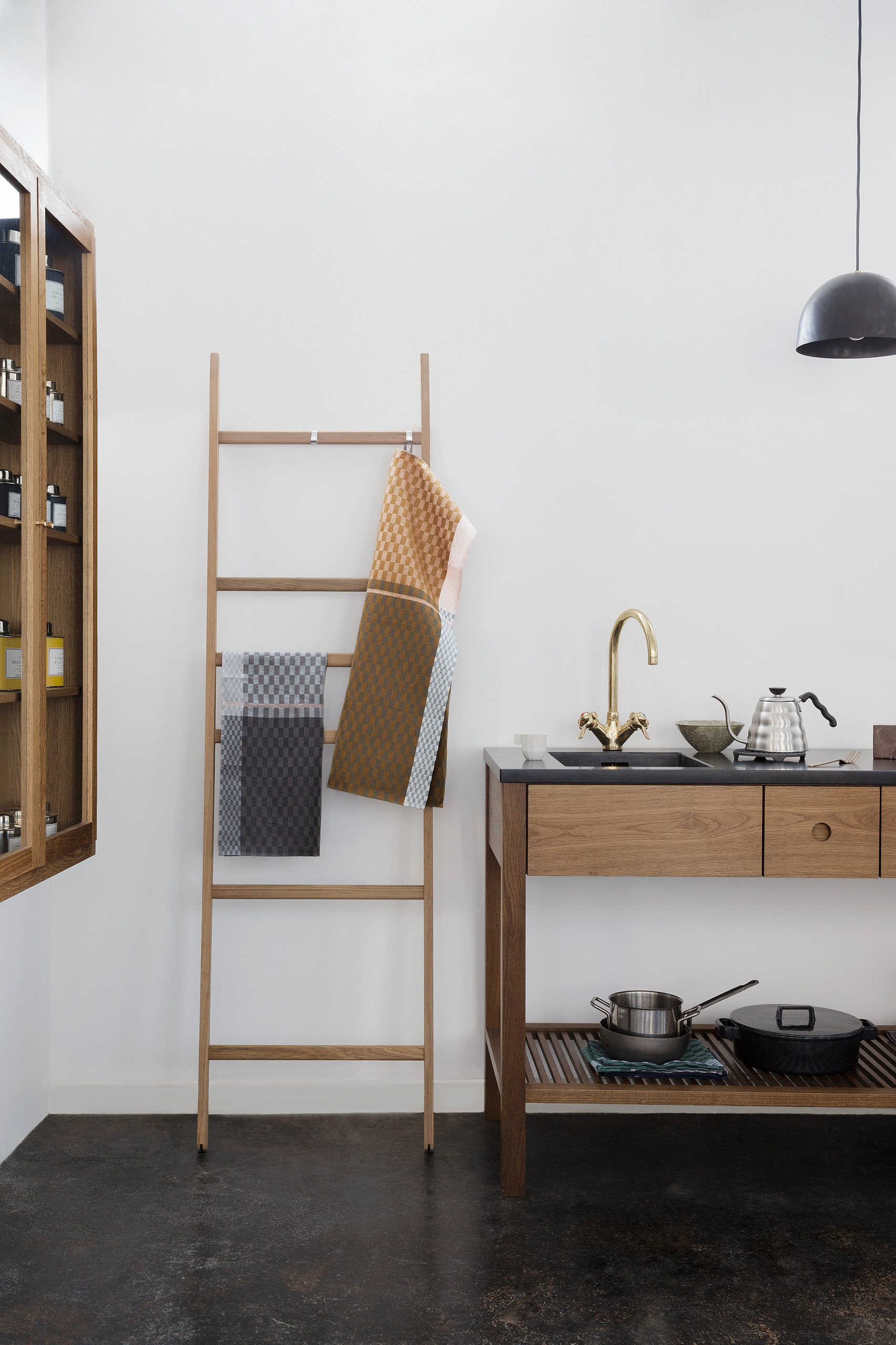 Ladder. I know you are thinking, “Yeah right, Becky, do you really think I have room to spare in my kitchen for propping up a ladder?” Of course I didn’t. But how could I not share the beautiful Danish simplicity of this kitchen?