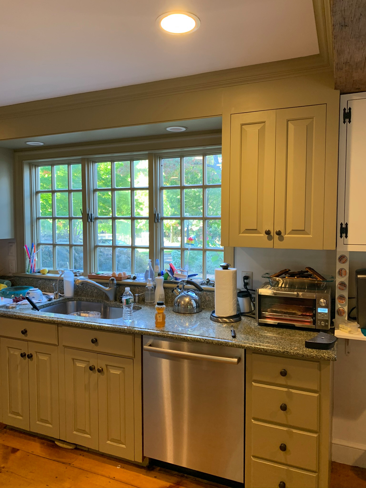 Before: Swartz moved the window that used to be behind the sink, pictured here, to the family room. It fills the space left by the slider doors, which are now in the baking room.