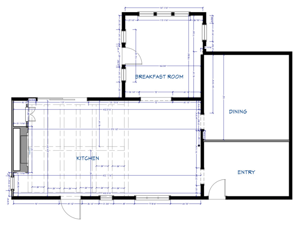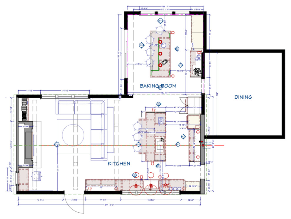 The couple had lived in it for more than two years before they hired Swartz, a family friend. By then, they’d come up with the idea of expanding their kitchen into the original family room in order to create separate cooking and baking zones, then adding a new family room alongside it.