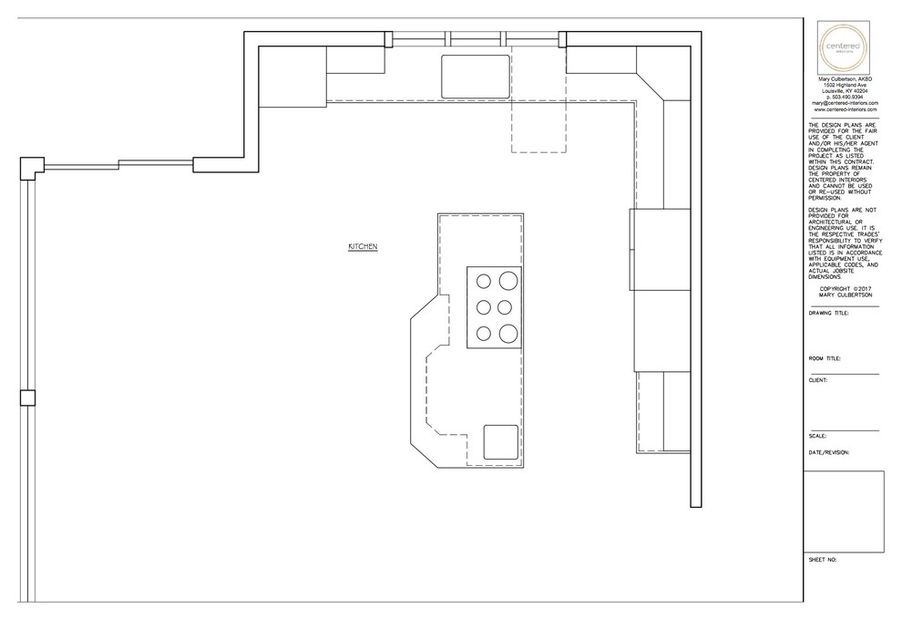 Before: This floor plan of the previous kitchen shows the limitations of the layout. “They didn’t take advantage of what they had,” Culbertson says. “It was like a tiny kitchen crammed into one corner of a giant room.”