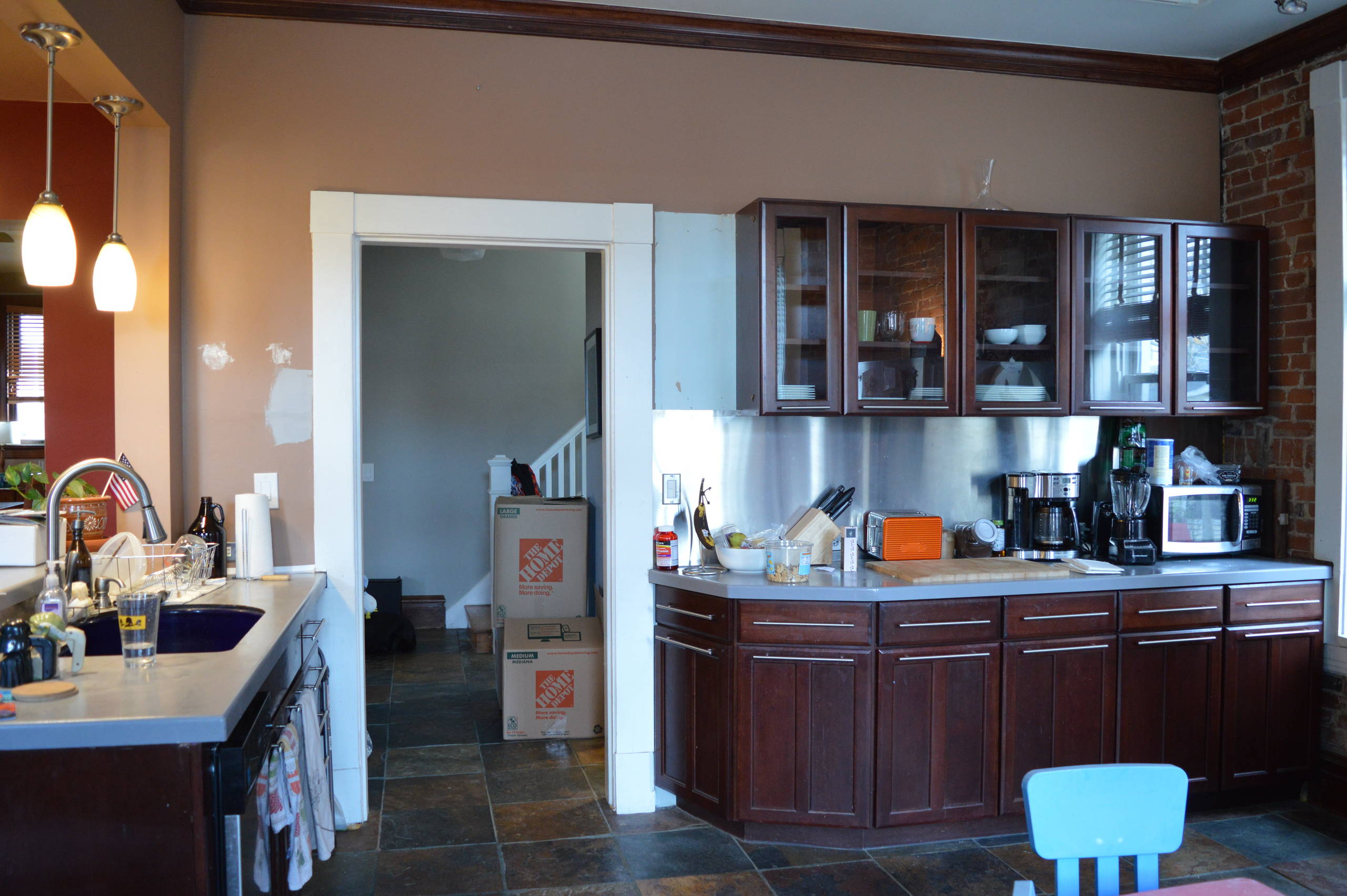 Scope of work. This was a down-to-the-studs remodel that included closing off a back hallway door to gain more storage and counter space.