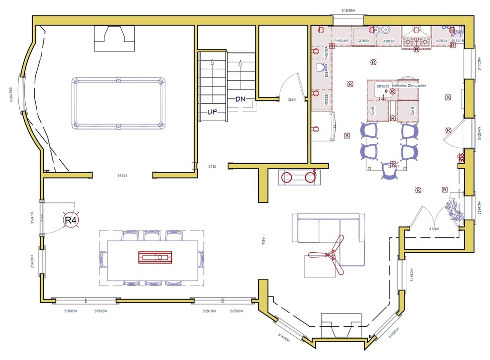Floor plan. Here you can see that the access to the back hallway is easy enough through the dining room. Losing the entry from the kitchen gave the family the functional layout it needed.