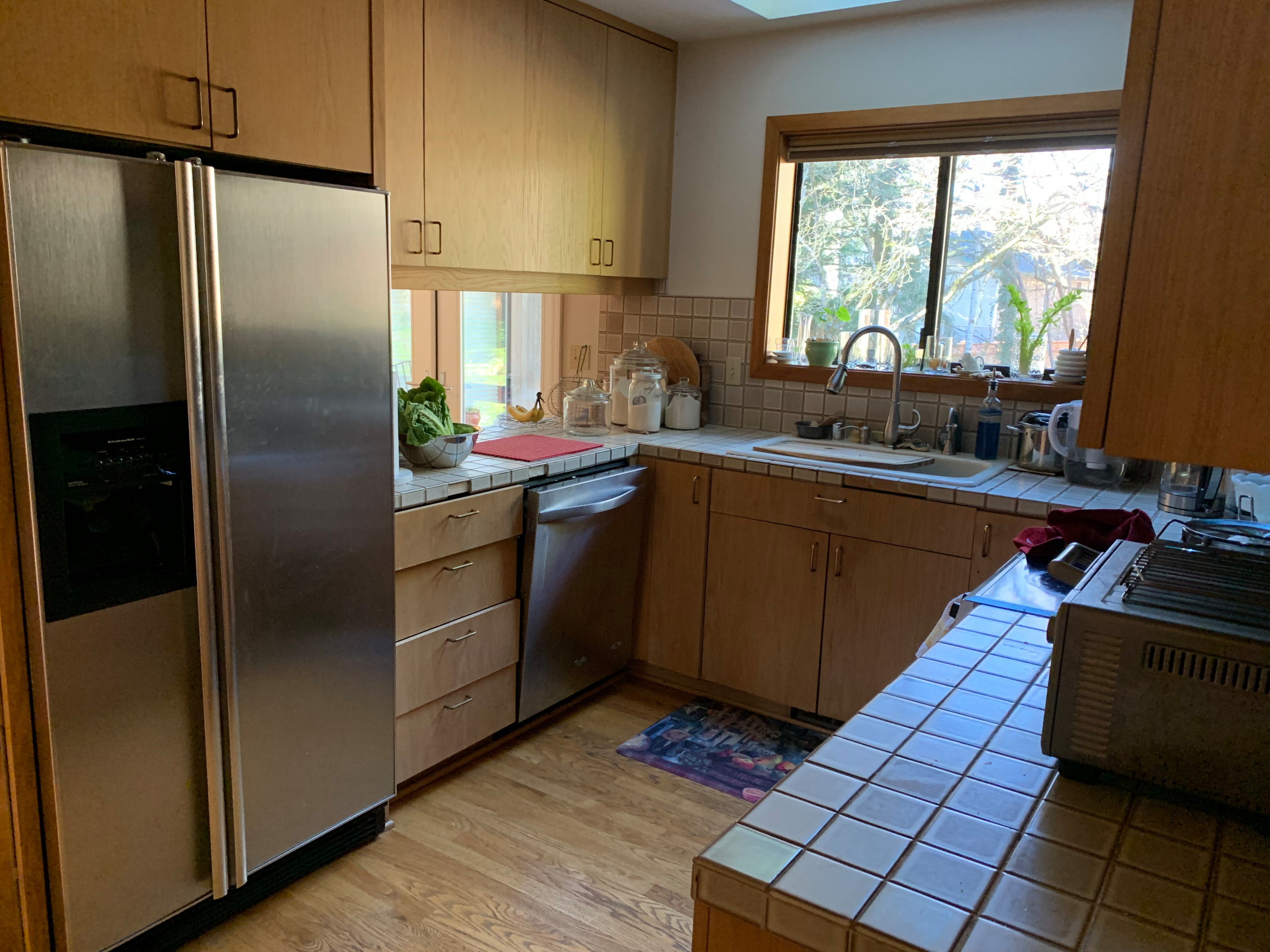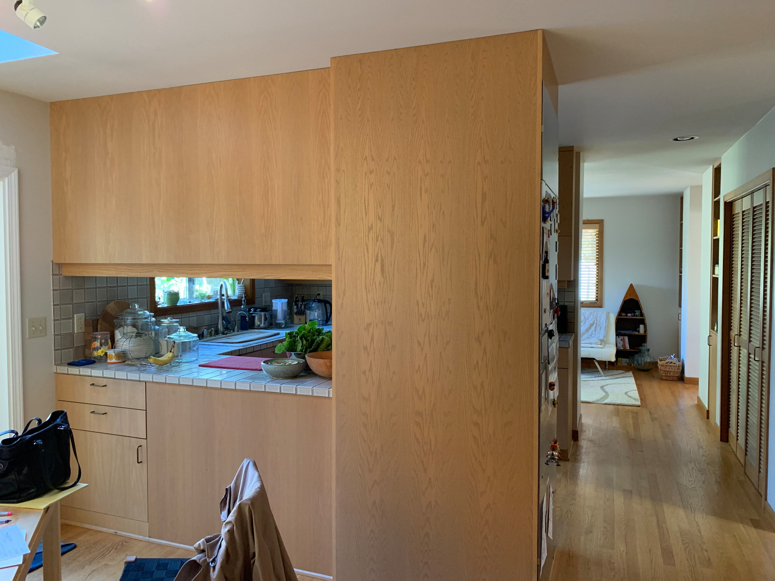 In addition to being cramped, the kitchen had dated cabinets and tile counters. It wasn’t conducive to having more than a few people in it at a time.
