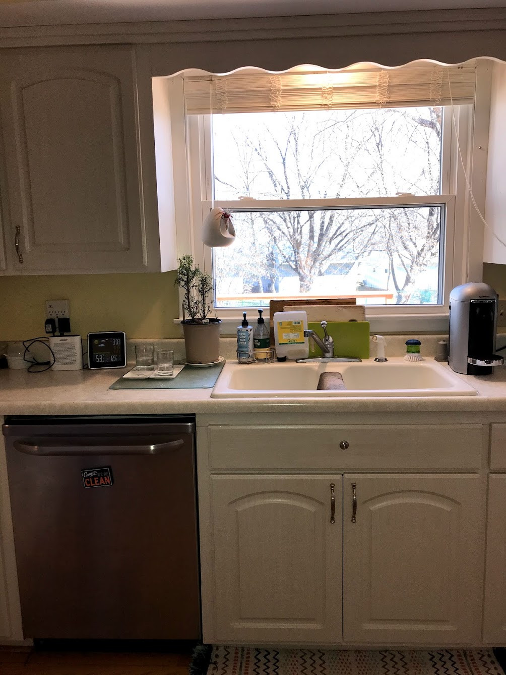 Before: The couple liked little about their previous kitchen. Yellow walls and white laminate cabinets and countertops — not to mention the scalloped trim over the sink — gave the space a muted, off-putting look.