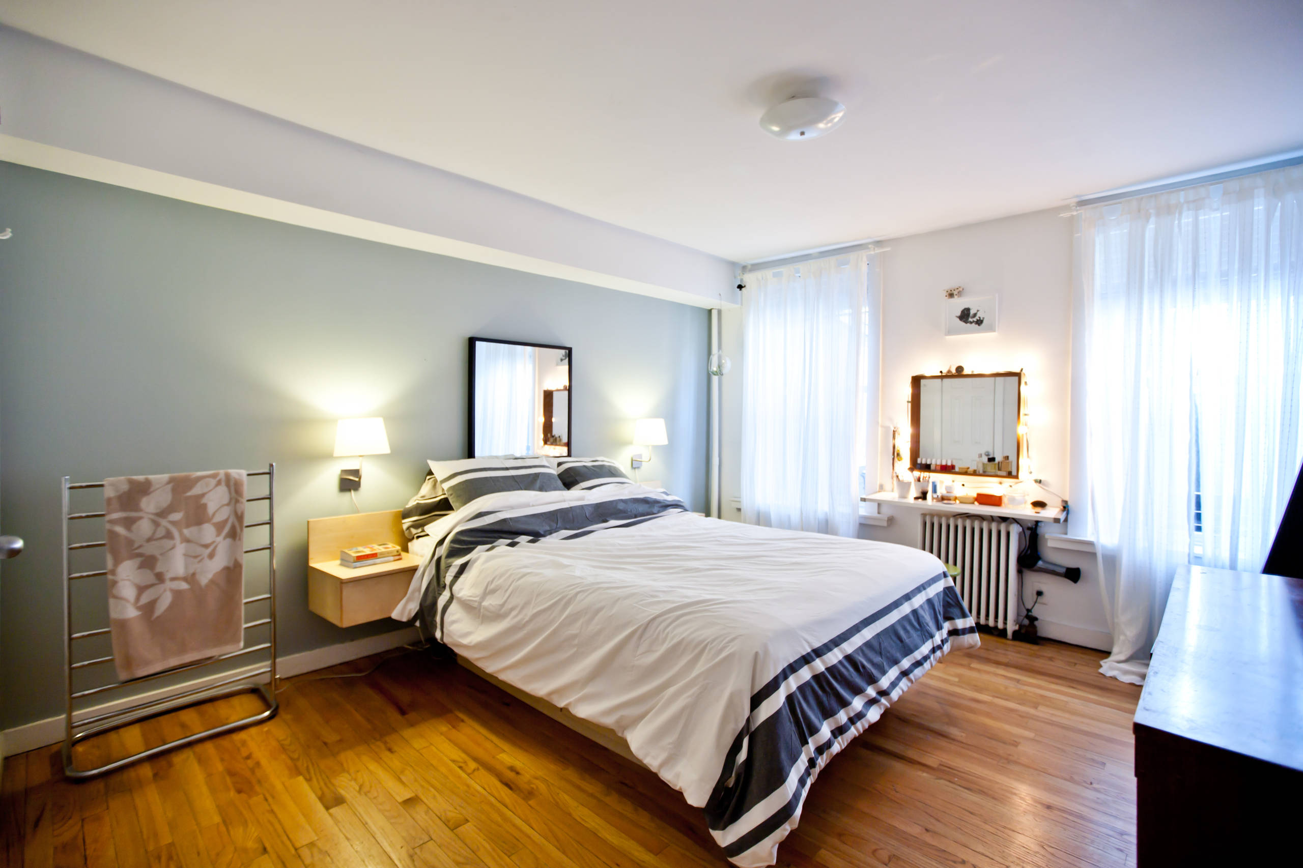 Towel warmers don't just have to be for the bathroom. Consider adding one, like this floor-mounted plug-in unit, to warm up the blankets in your bedroom on cold winter nights.