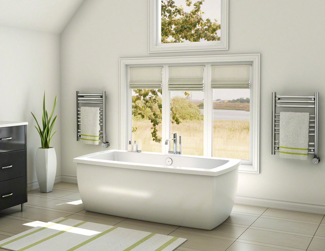 Towel warmers now come in hydronic and electric formats. Both versions are available as wall-mounted units for those short on floor space.