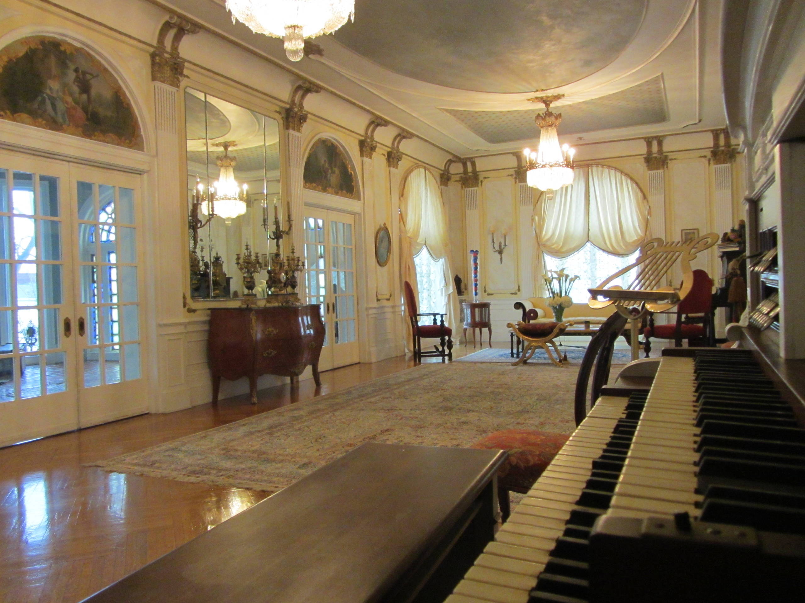 The music salon contains 24 ornate gold-leaf pillars with Corinthian capitals.