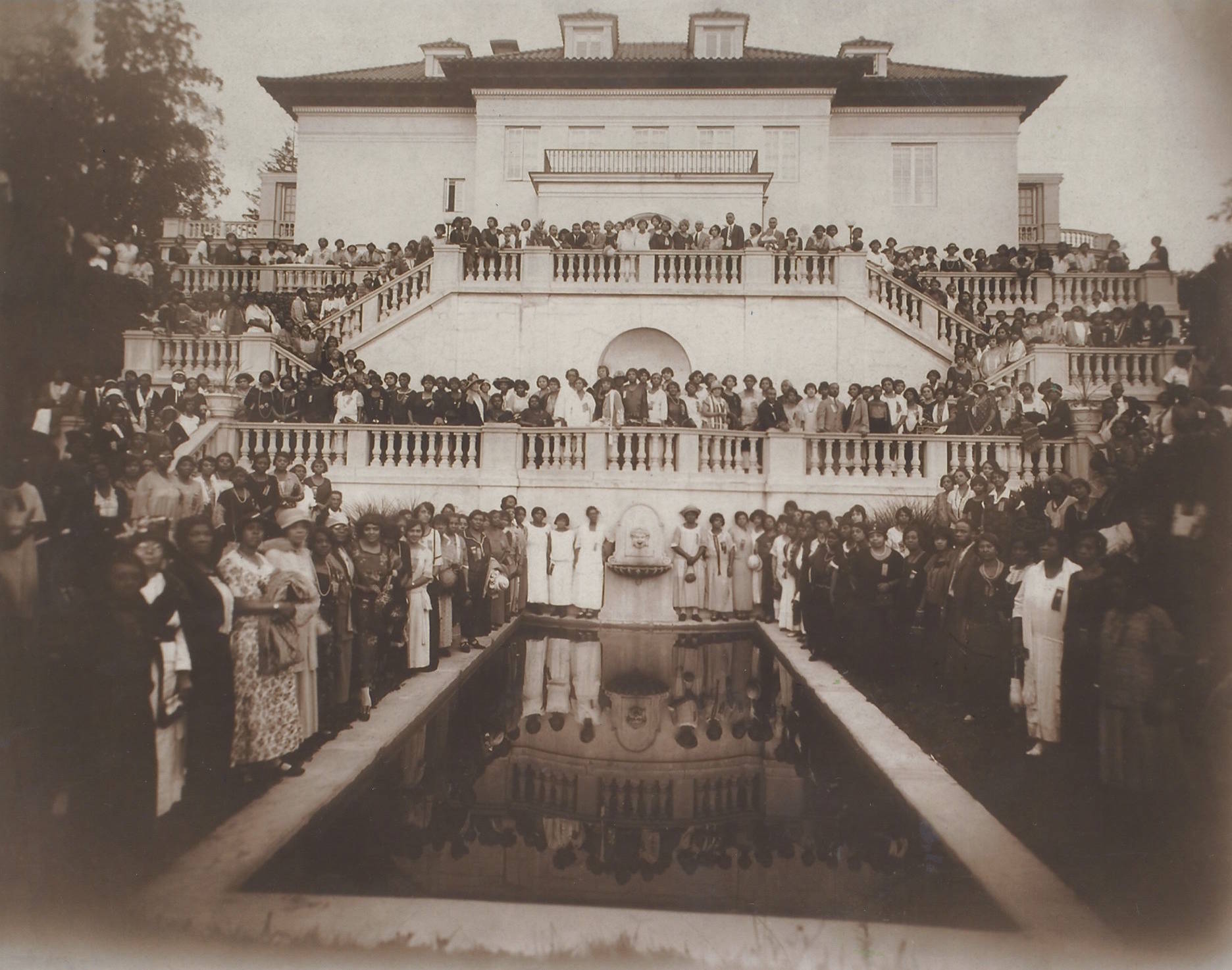 In November 1923, A’Lelia hosted her daughter Mae’s wedding reception at Villa Lewaro. After an elaborate ceremony at St. Philip’s Episcopal Church in Harlem, 900 guests crowded onto the grounds. The event was widely covered in The New York Age and The New York Times.
