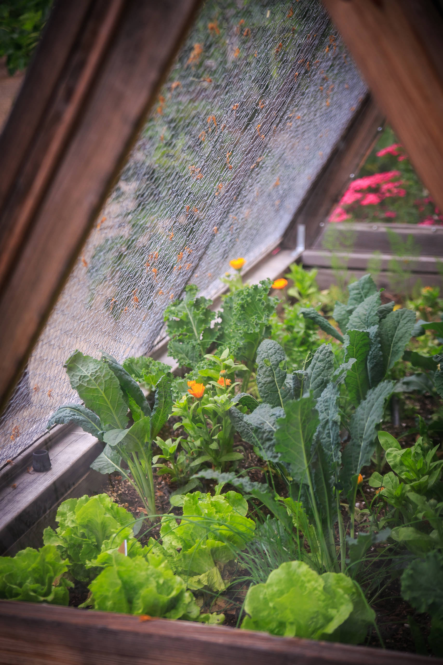 For colder regions, grow cool-season edibles in raised beds under a cold frame. Many edible greens, such as ‘Red Russian’ kale and purple cabbage, are ornamental enough to grow as part of container displays.