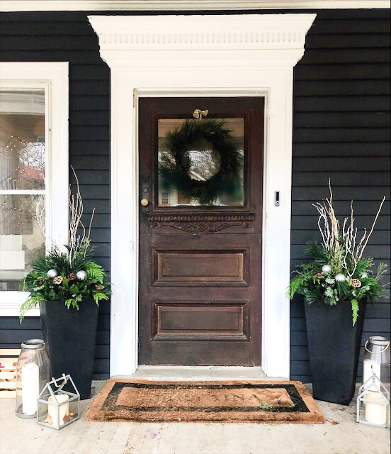 Add interest and welcoming color to entryways with potted winter arrangements. In hard-winter regions, choose a heavyweight ceramic container that can withstand subfreezing temperatures without cracking. Combine evergreen foliage, such as boxwoods or conifers, with winter-blooming flowers or branches of preserved berries.