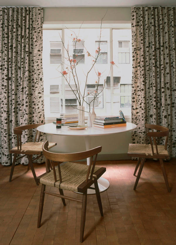 I am 99 percent sure that these are Nakashima chairs, and I absolutely love the unexpected combination of these with the Tulip table.