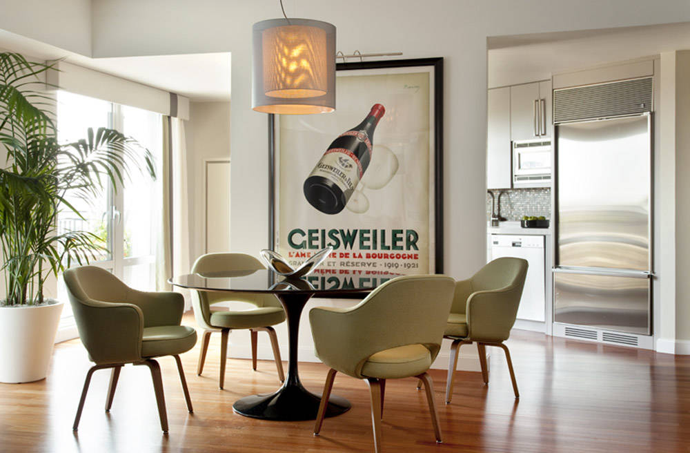 This space isn't small, but it shows how keeping the flooring color the same from room to room furthers the feeling of spaciousness.