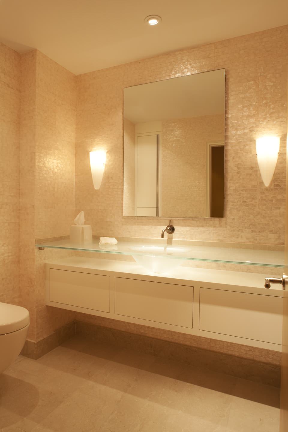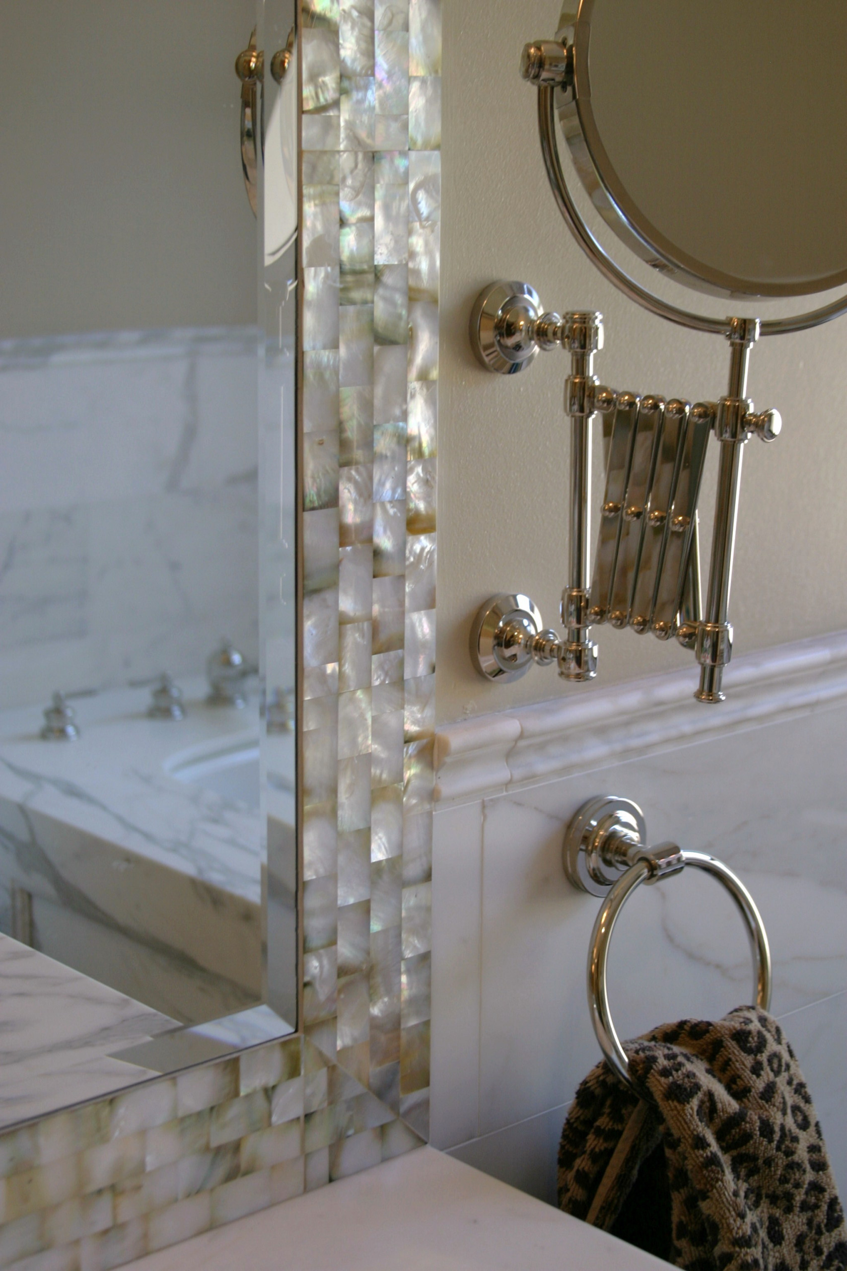 A framed mother-of-pearl mirror transforms any bath to a luxurious spa-like experience. It is the attention to detail that provides an instant upgrade to common spaces.