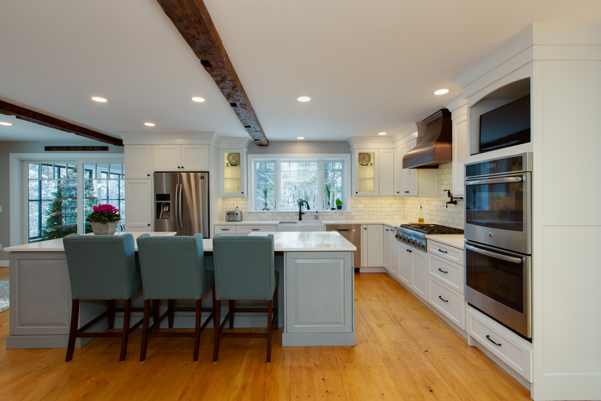 “The rules of a three-zone kitchen were simple: There should be no more than a few steps between the refrigerator, cooktop-oven and sink, and no physical interruptions between those three points of the kitchen triangle,” Palmer says.