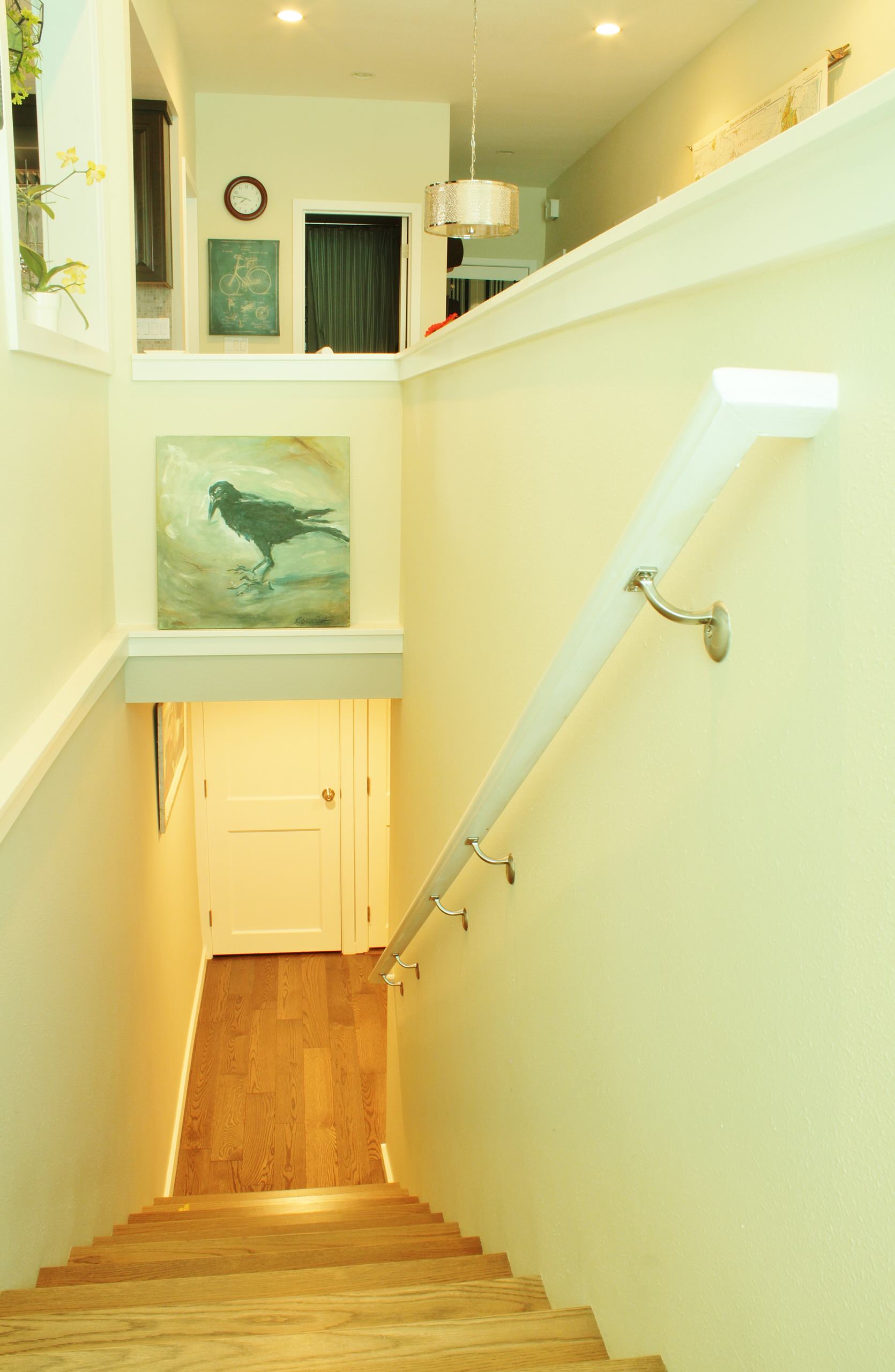 A new stairway offers a bright and inviting entry into the basement, which was unfinished when Konasiewicz bought the house. West says it was “frankly scary.”