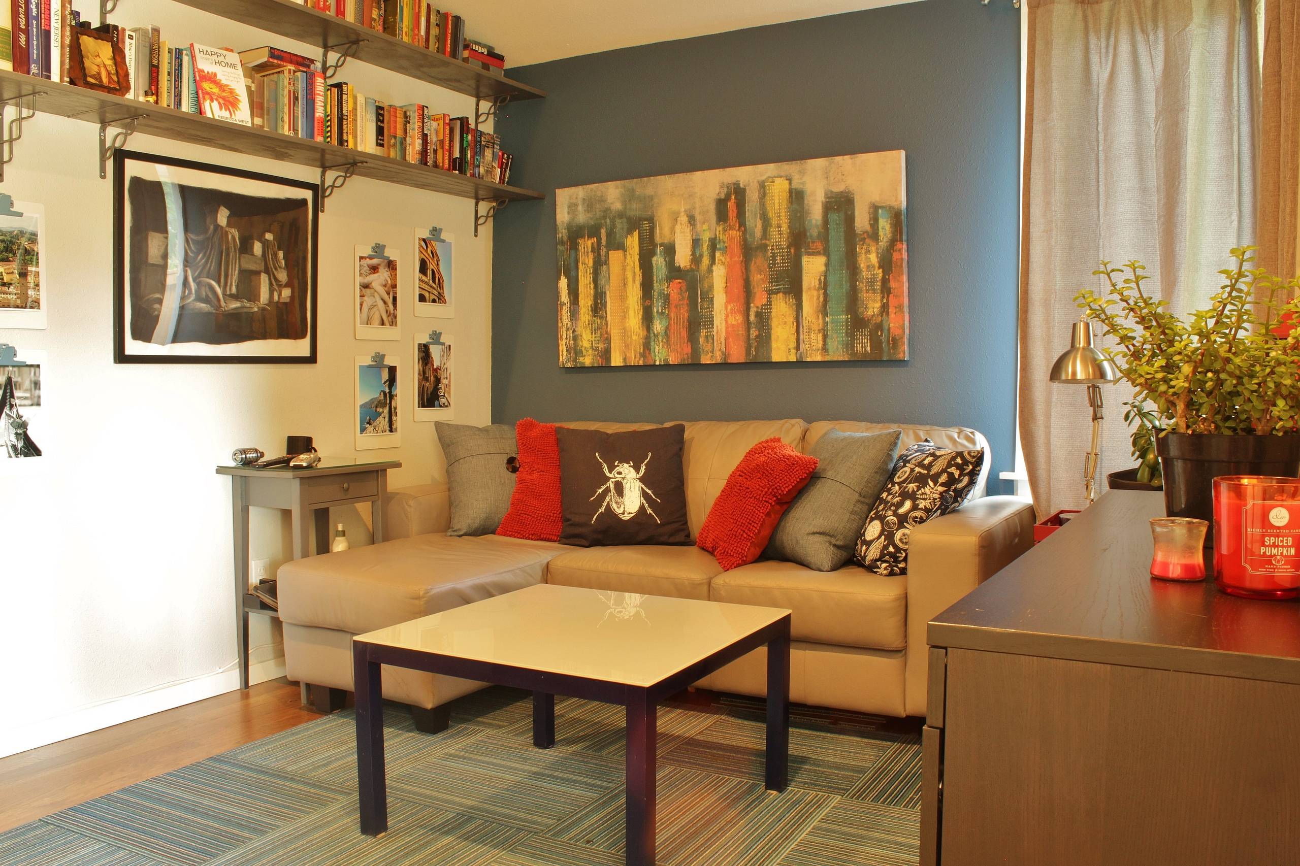 Wall paint: Flint, Benjamin Moore; sofa: Dania via Craigslist