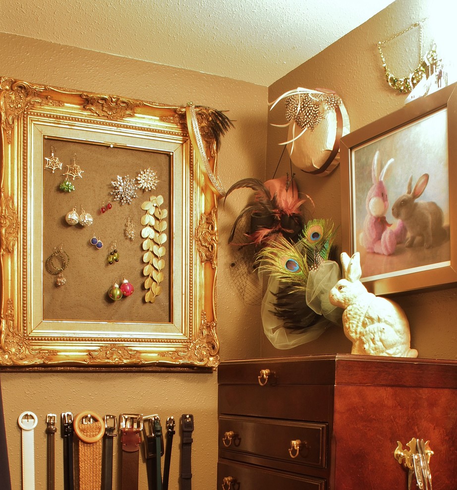West and Konasiewicz share a room-size closet. Here, West displays her accessories on a DIY project.