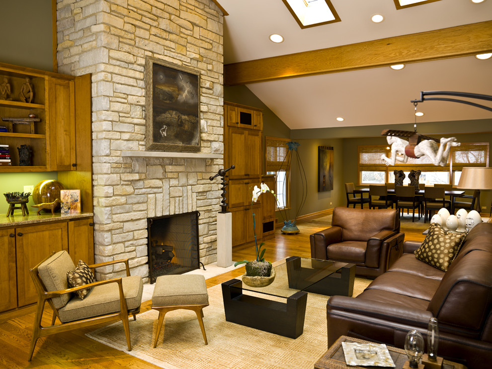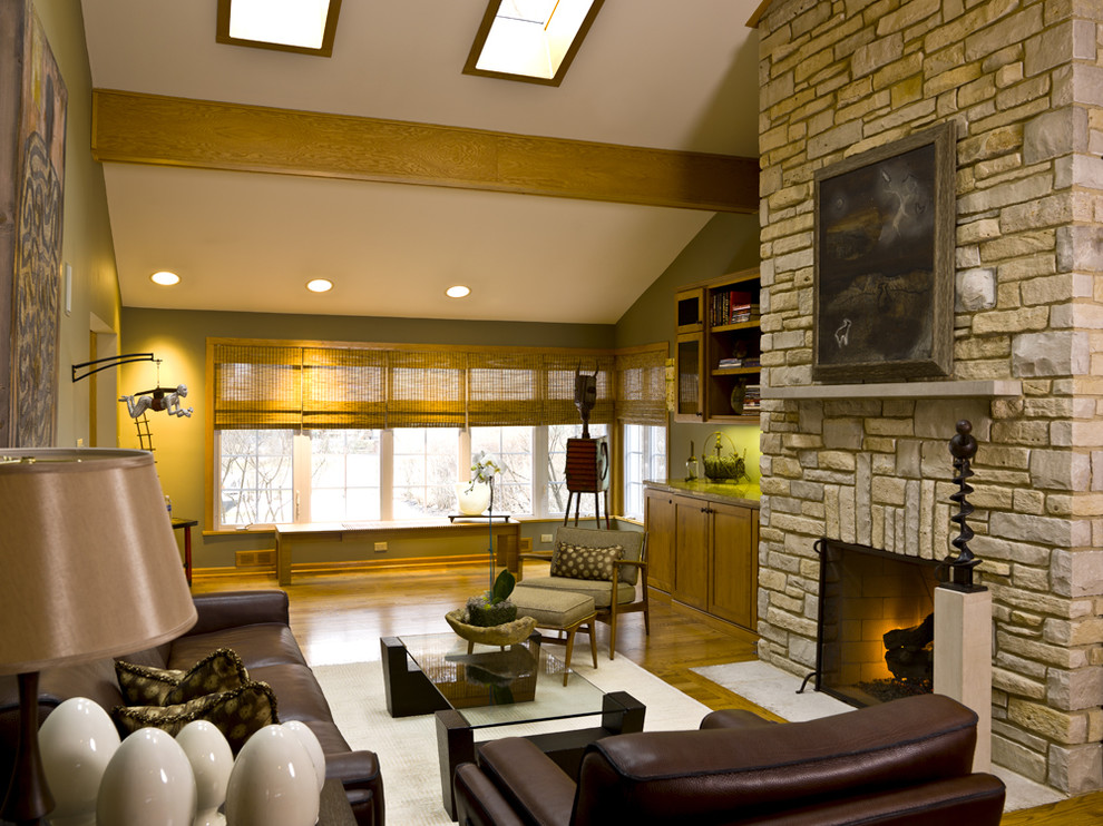 "Peachy" typically means something good, but for Michael and Karen Hohman, it described the outdated pastel hue of their 1950s split-level home in Chicago. From the exterior trim to the walls and ceilings, nearly everything sported the cheeky hue. The Hohmans knew that, despite the color, there was great potential in the structure of the house. With the help of designer Lynn Hertl of LKH Design, they started with a fresh coat of paint and renovated the living room, family room and sunroom, transforming their midcentury space into a contemporary home.