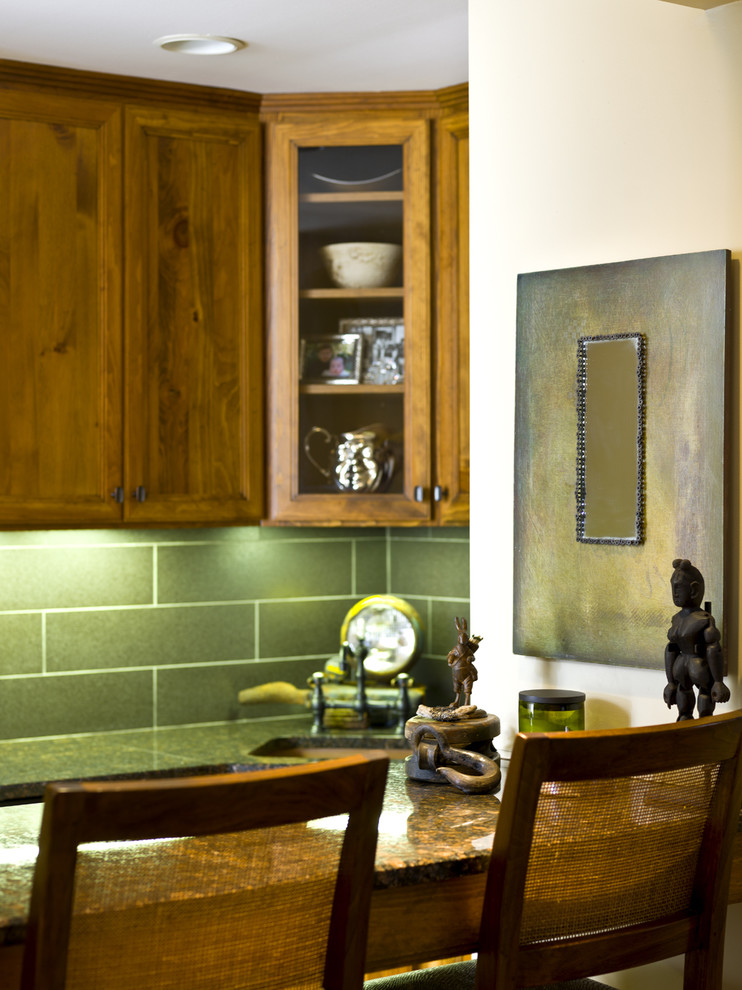 KH: The room spaces were awkward, and it challenged us to design each room creatively with furniture and art. We tried to salvage some of the hard material that existed in the home, such as the granite and the cabinets.