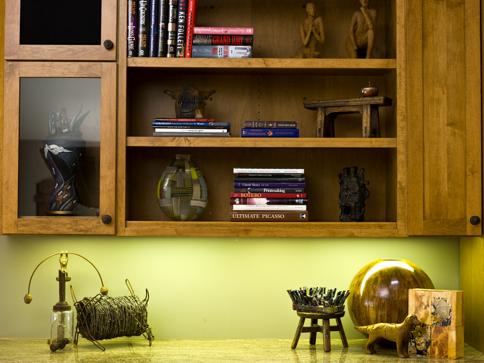 Karen bought the dining room centerpiece sculptures when she was a student at Indiana University. She says, "They have an amazing art school, and I was fortunate enough to purchase them from a gallery that featured and sold student work."