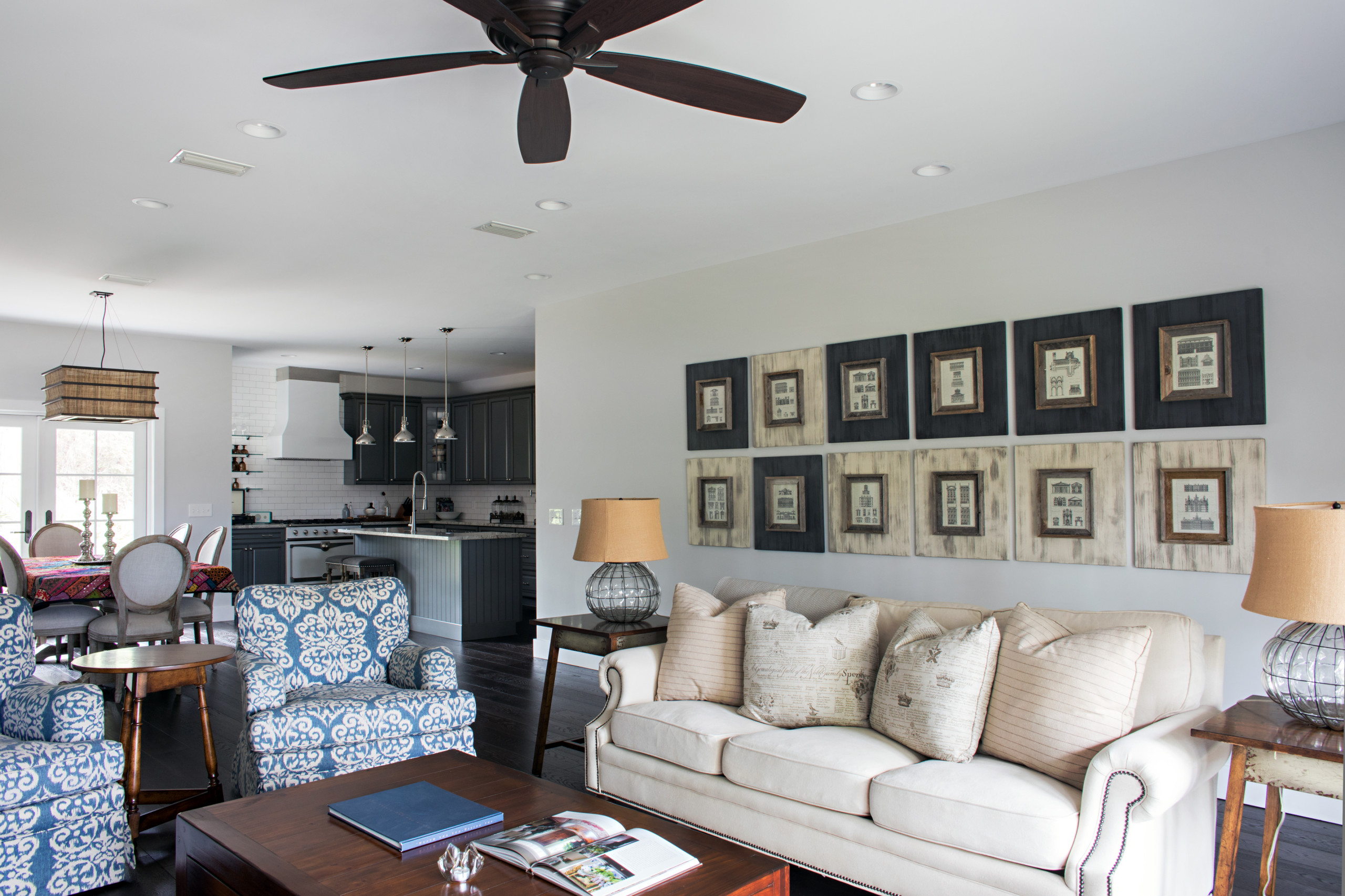 The wall at the top of the stairs features uniquely personal art. The Tatums had a painting party with about 15 friends, who were given white canvases and black paint to create art pieces, which the couple later cropped, edited and framed. The abstract art appeals to Mary Beth’s minimalist sensibilities.