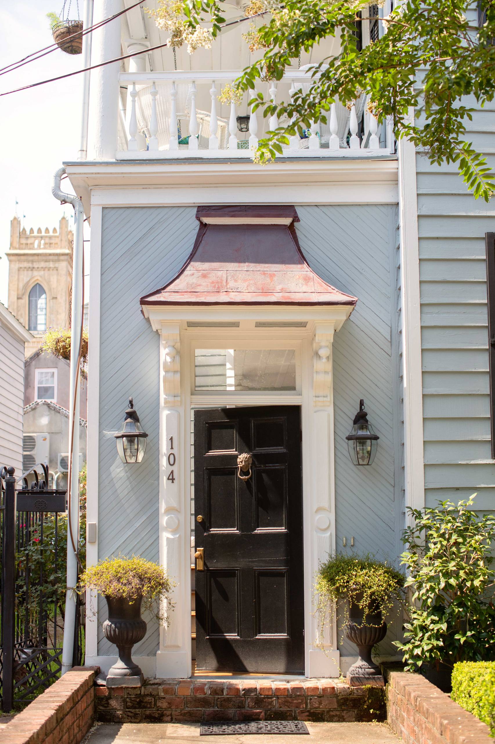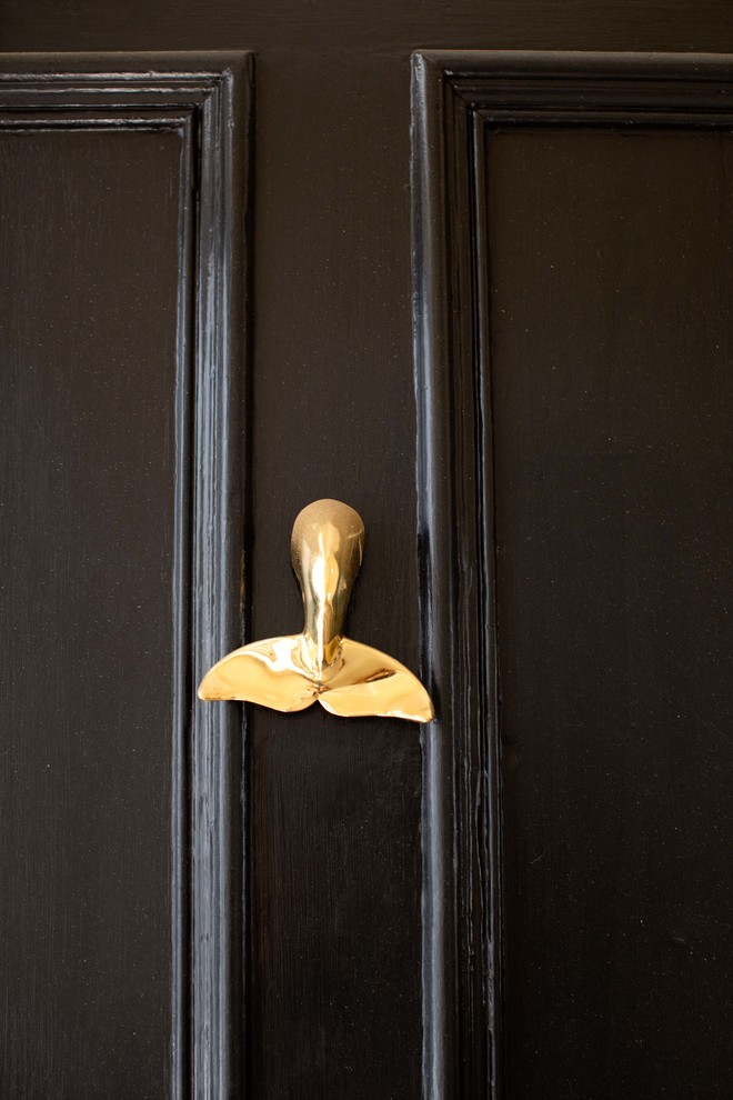 On the front door, a whale-shaped door knocker is a tribute to time spent in Nantucket, Massachusetts, where Temkin would go on vacation with her family. “My family has been visiting the island every summer since I was really young, and it’s still probably my favorite place in the world,” she says. “The island used to be a whaling hub, and there is homage to that nearly everywhere. The door knocker was a way to bring a piece of that place to Charleston.”