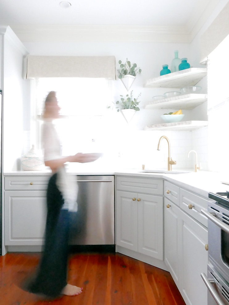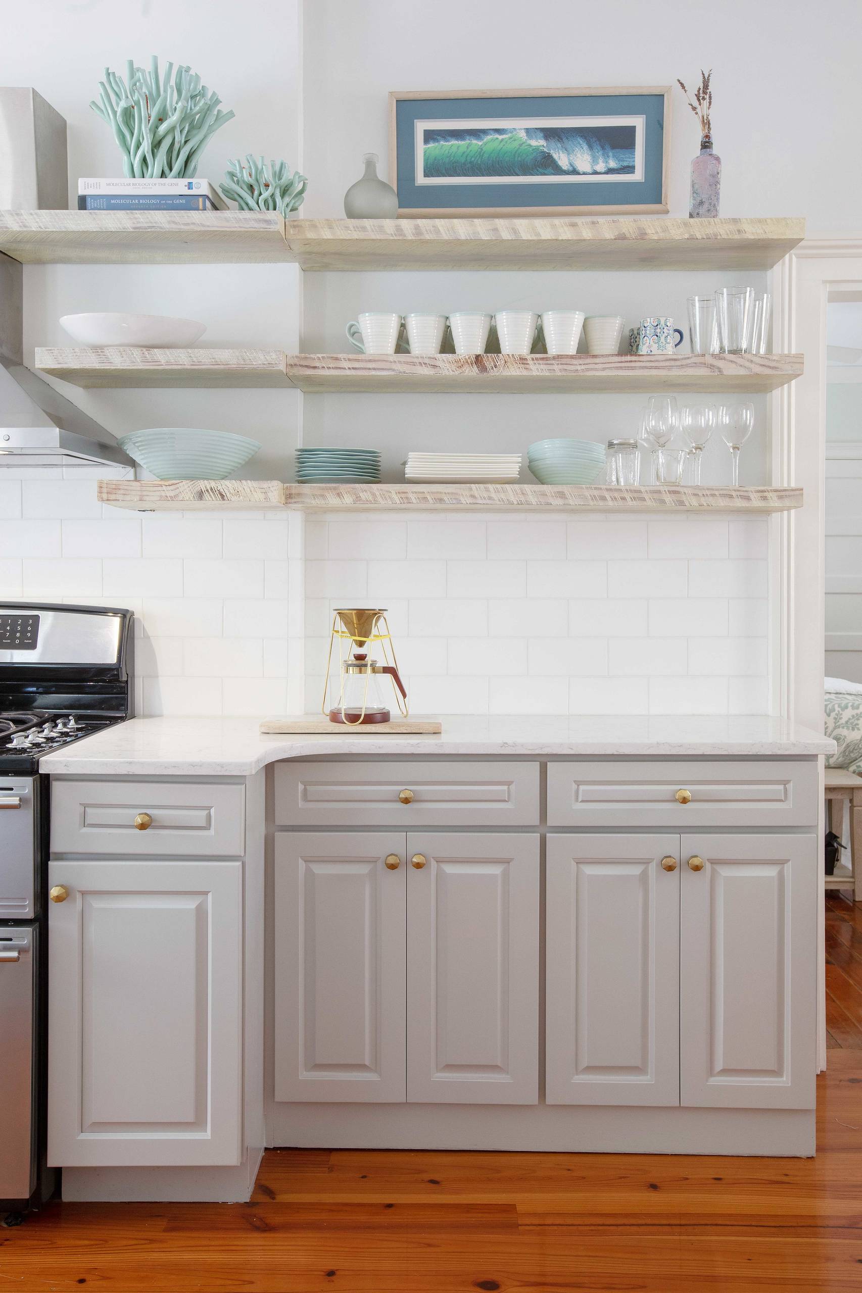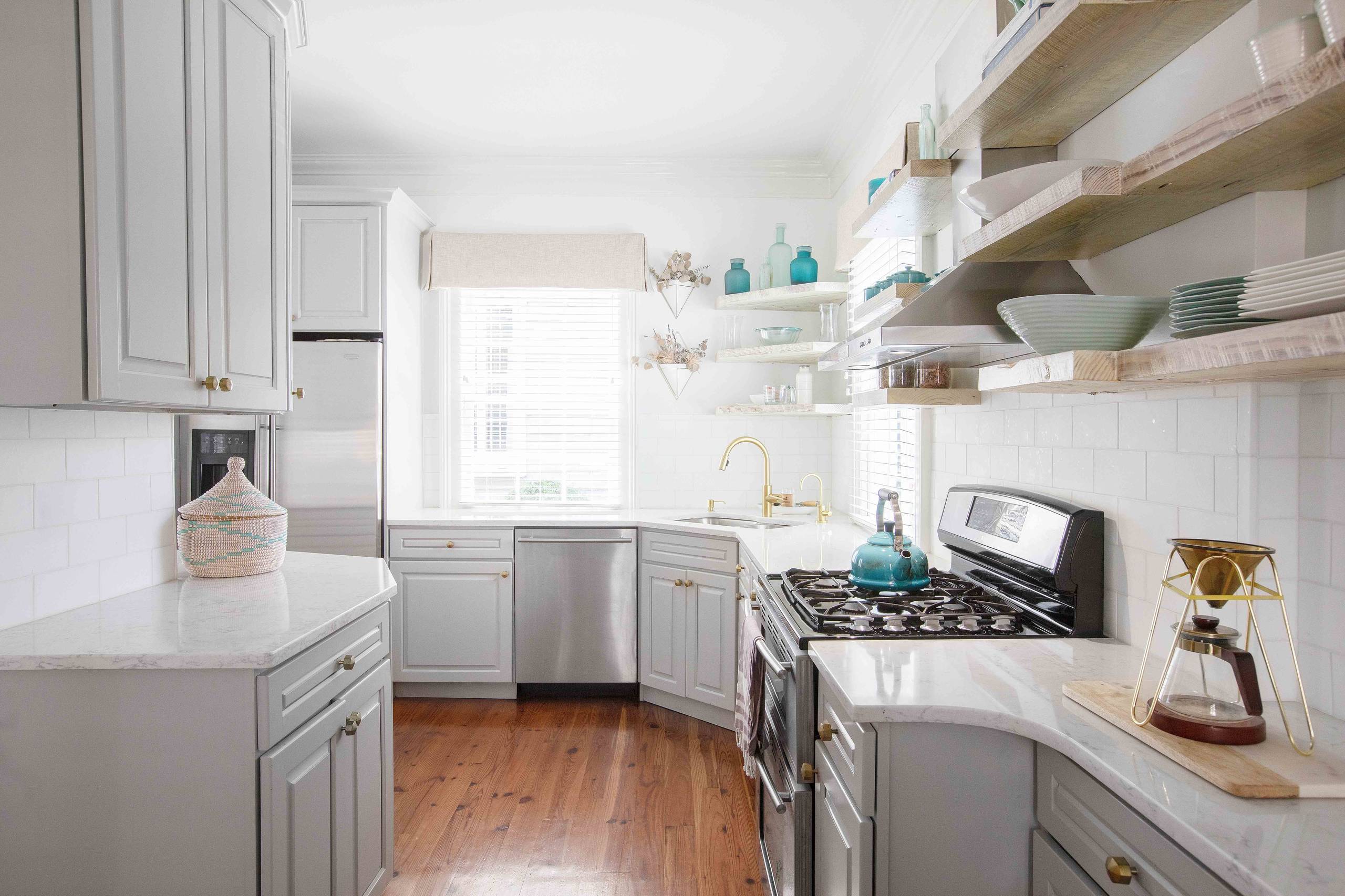 See why a designer combined open shelves and cabinets in her kitchen remodel